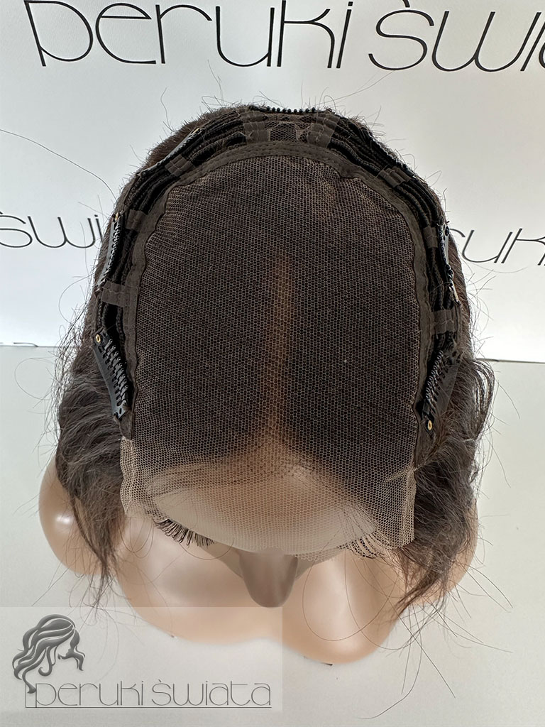 Topper hybrydowy, włosy naturalne, częściowo tkany ręcznie na siateczce, model Izumi, kolor: brązowy