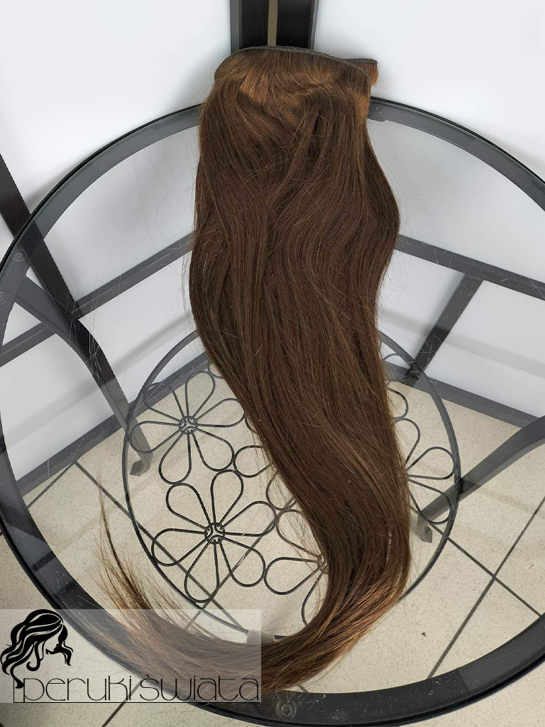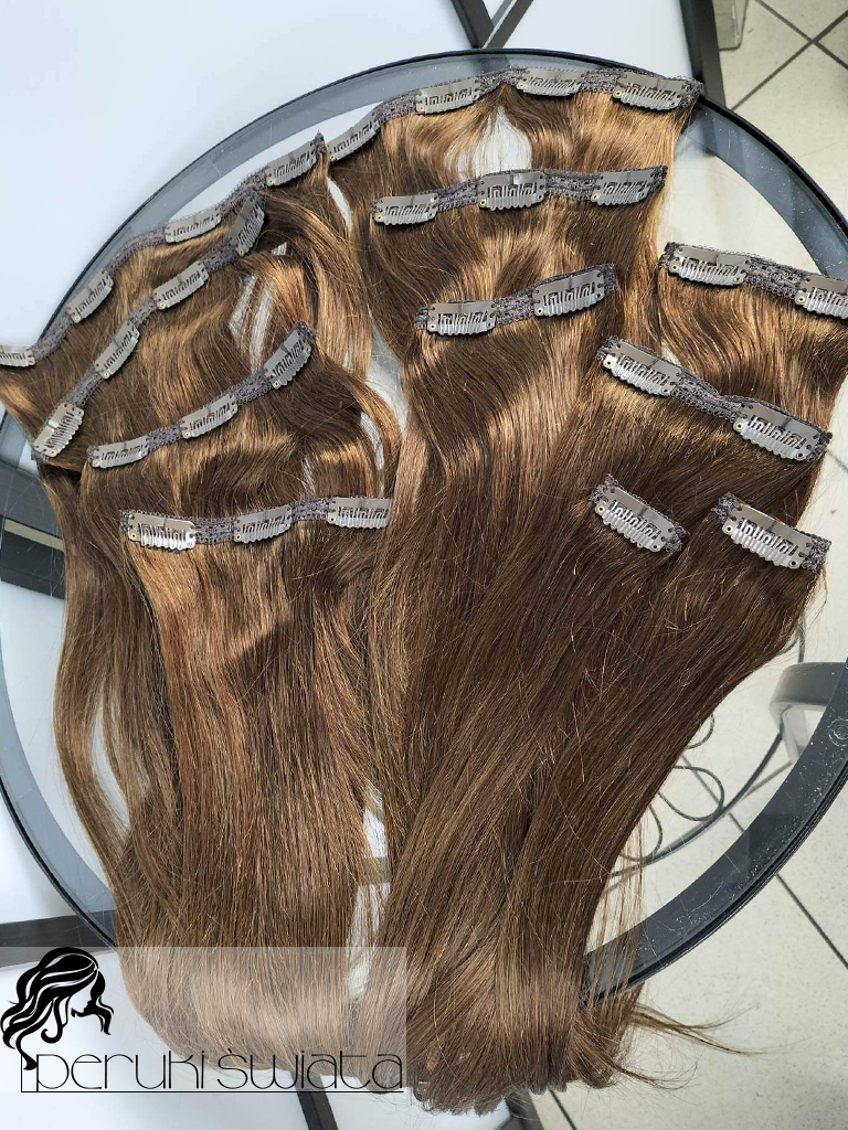 Dopinki z włosów słowiańskich, zestaw 10 sztuk na całą głowę, na klipsach, kolor: ciemny ciepły blond,