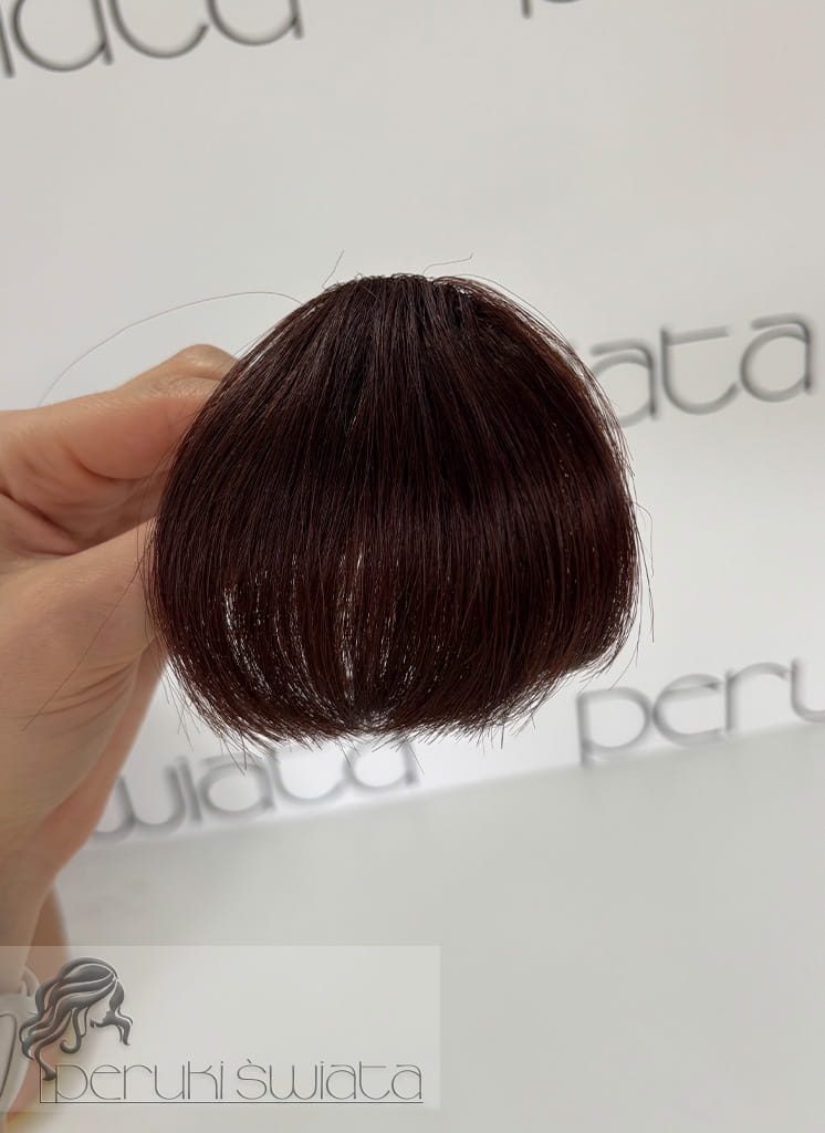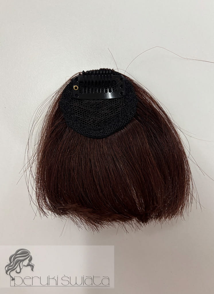 Grzywka z włosów naturalnych, mocowanie na klips, kolor: ciemny brąz