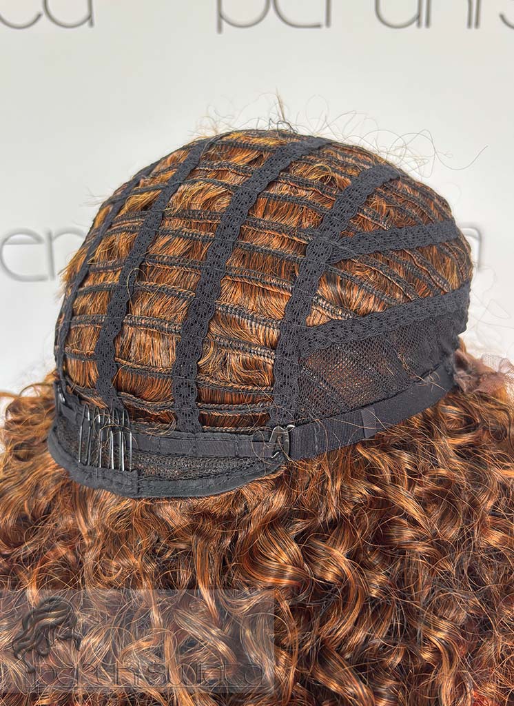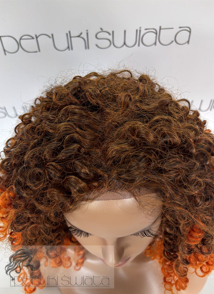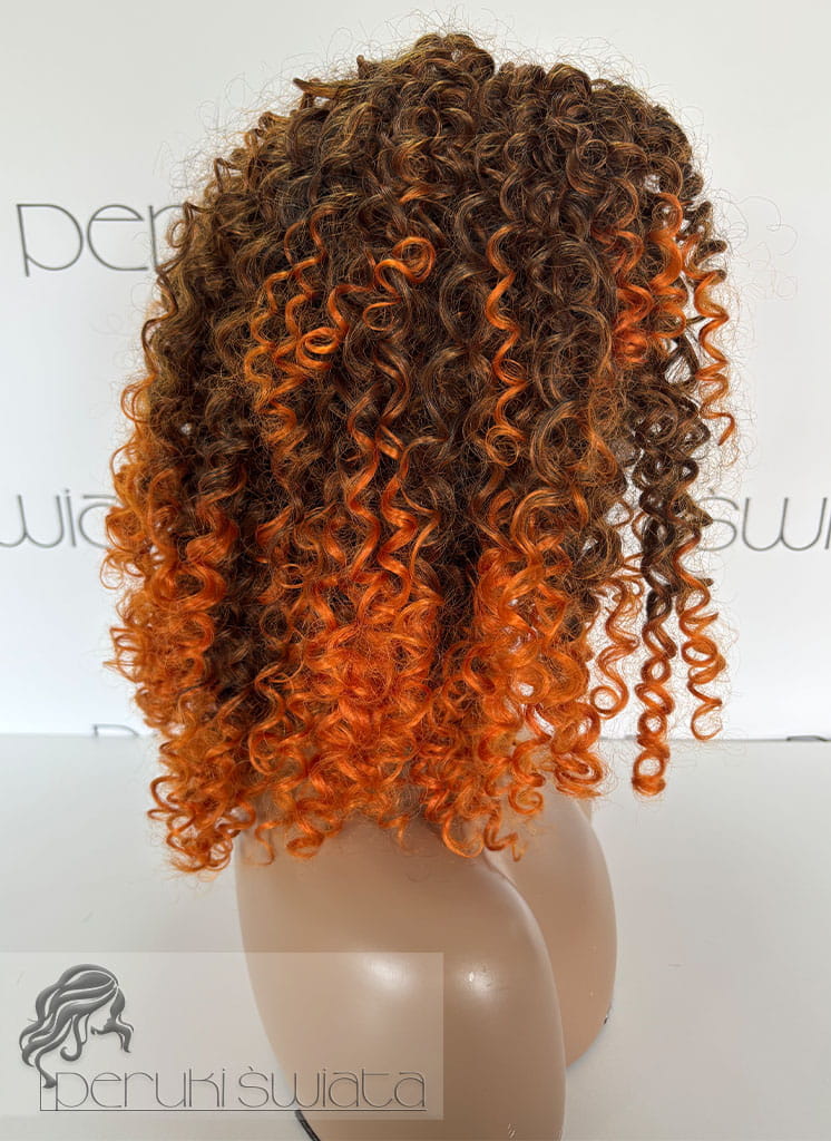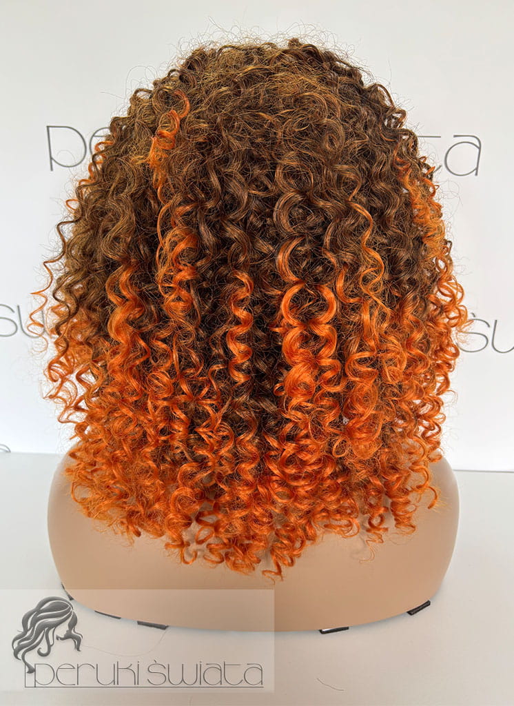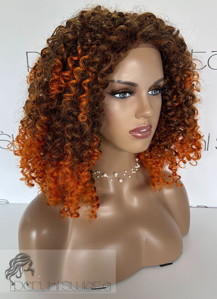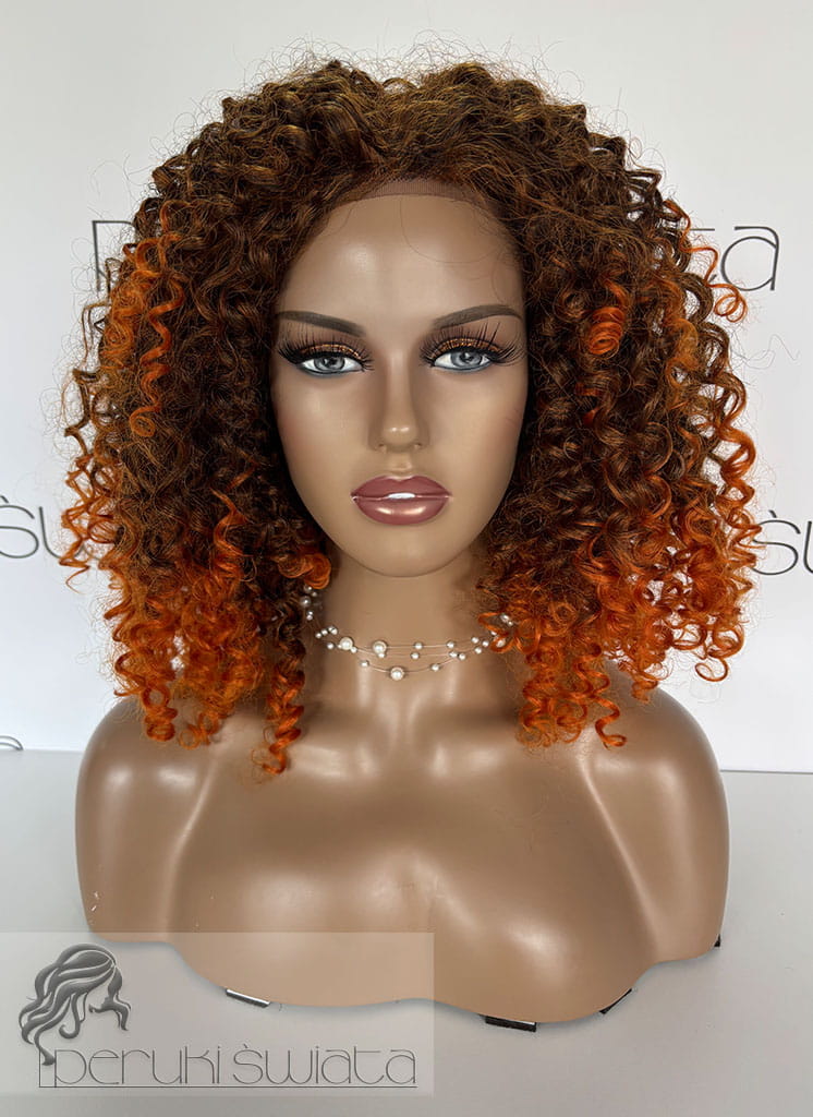 Irmina, peruka syntetyczna z kanekalonu termoodpornego, afroloki, kolor: brąz + tycjan