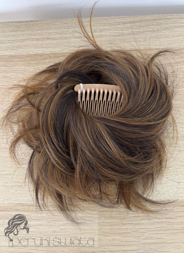 Koczek syntetyczny nr KKS40, na grzebyku z kanekalonu termoplastycznego, brąz z ciepłym, ciemnym blondem (4BH27)