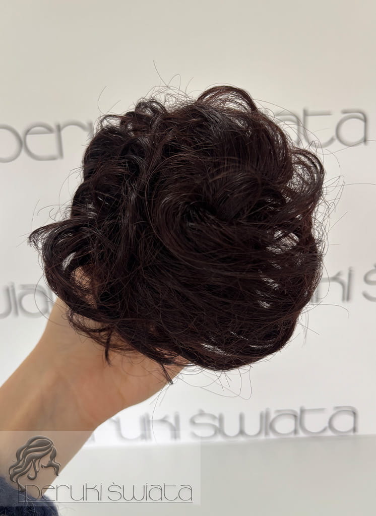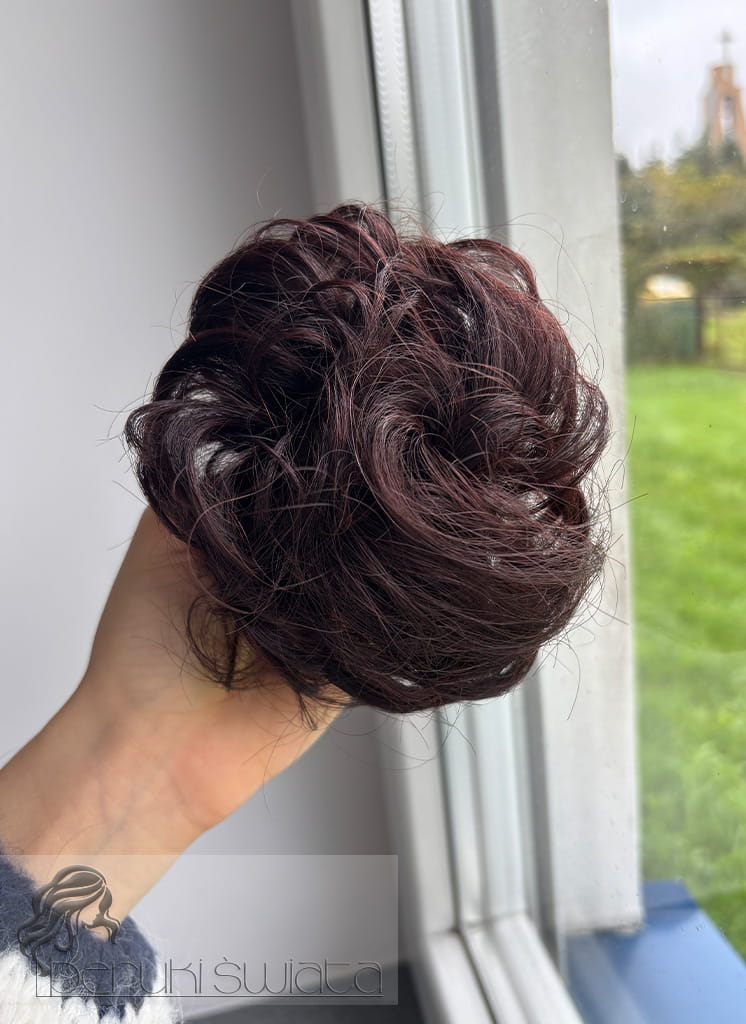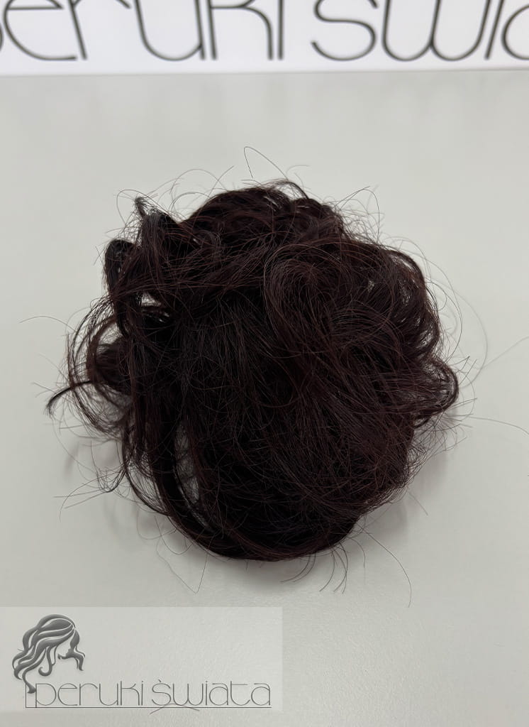Koczek z włosów naturalnych, na gumce, kolor: ciemny mahoniowy brąz