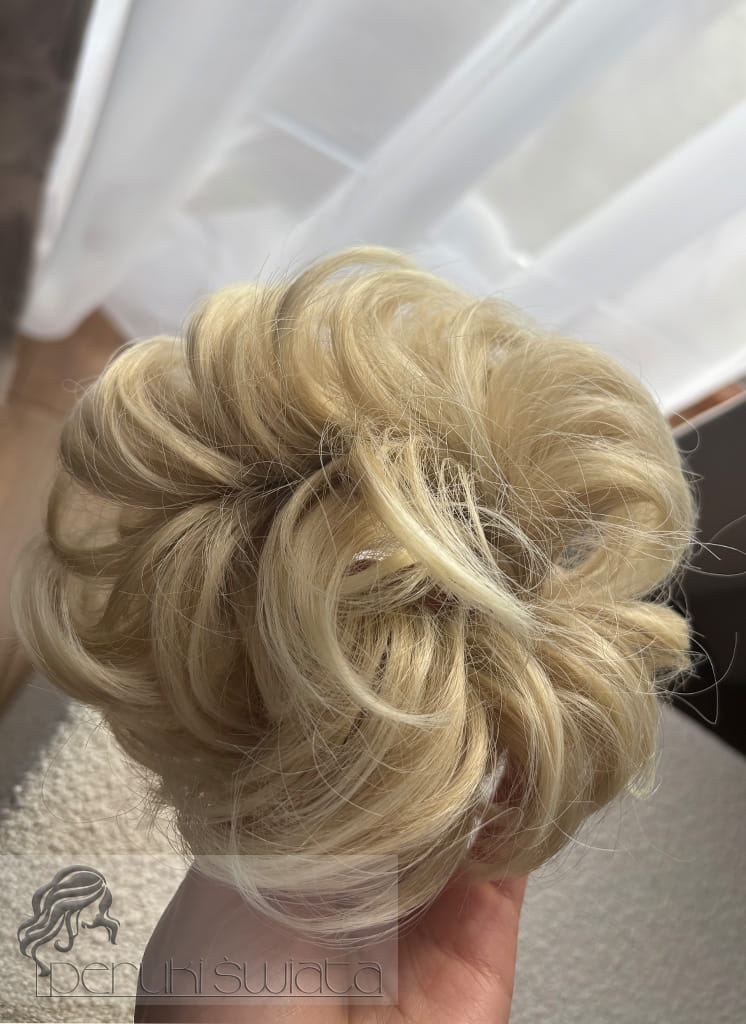 Koczek z włosów naturalnych, na gumce, kolor: jasny, chłodny blond