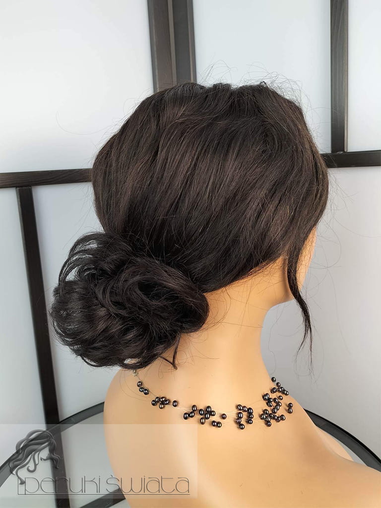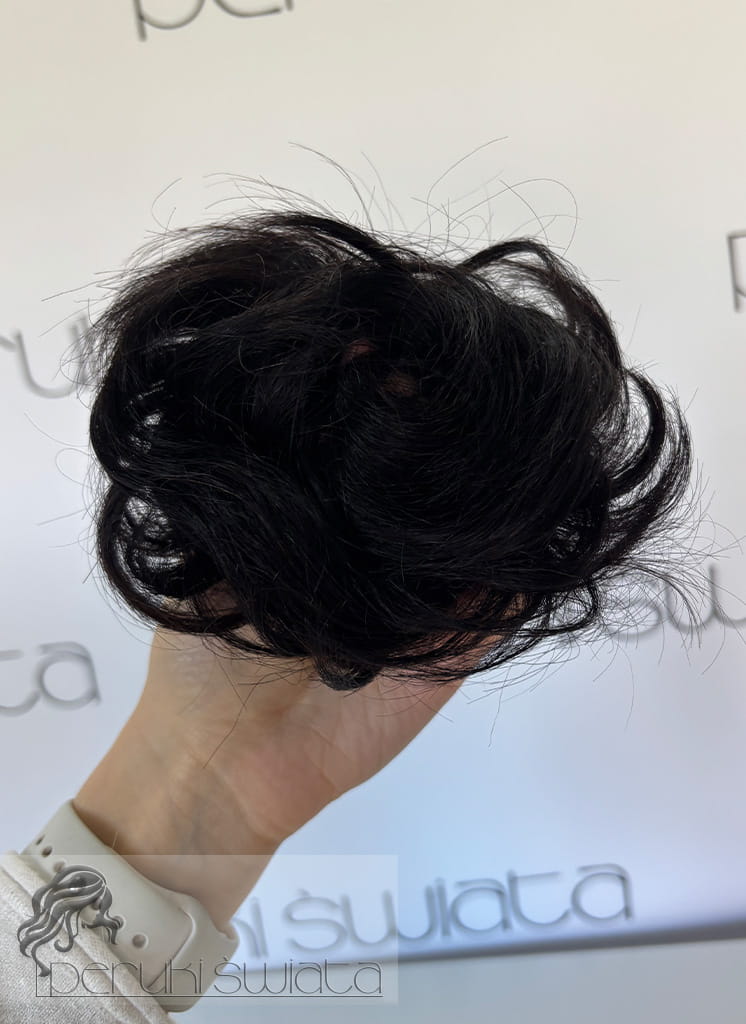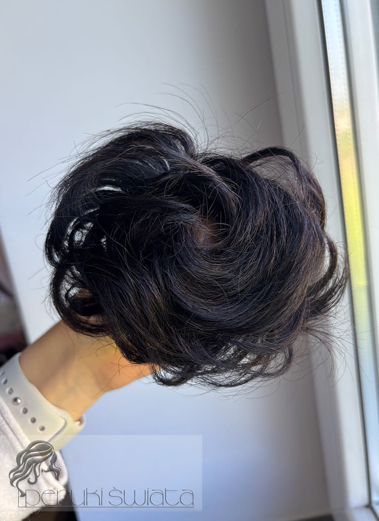 Koczek z włosów naturalnych, na gumce, kolor: najciemniejszy brąz