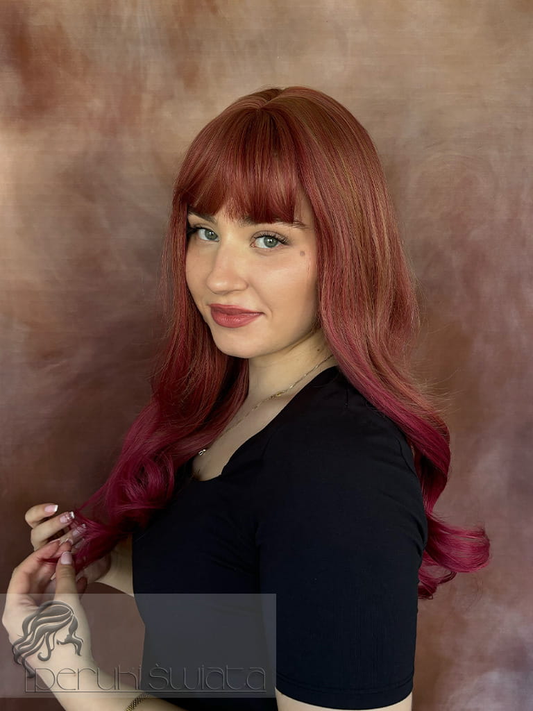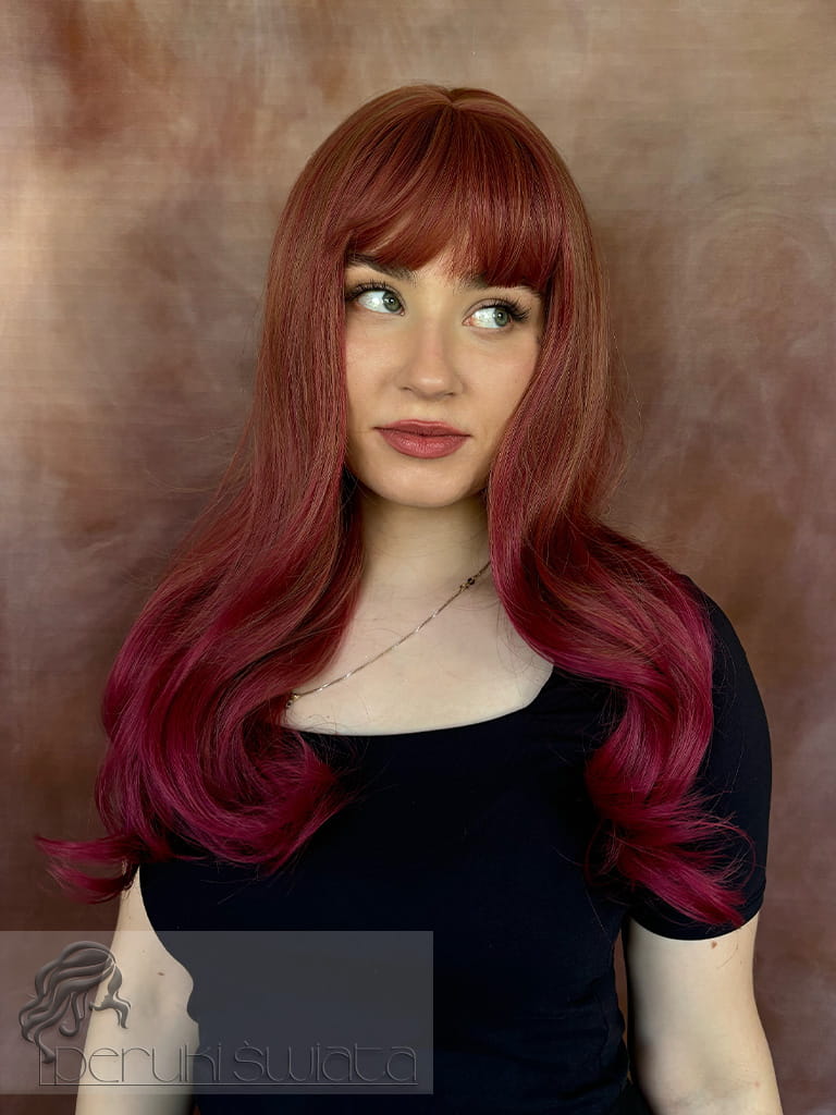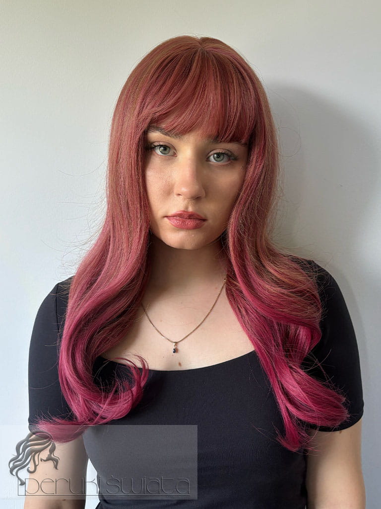 Model Alicia, peruka z kanekalonu typu "true hair", fale/loki, kolor: dwa odcienie różu