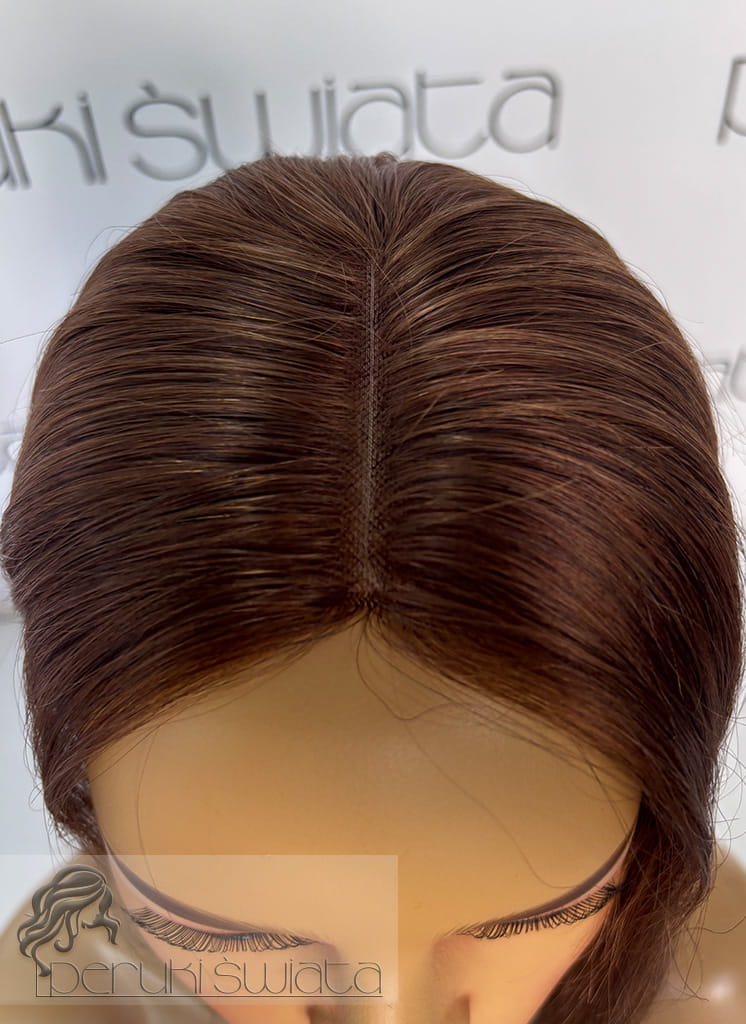 Baza z koronki szwajcarskiej 13 cm x 12.5 cm od spodu, od strony włosy pokryta cieniutką błonką silikonową imitującą skalp (możliwość dowolnego zaczesania włosów)