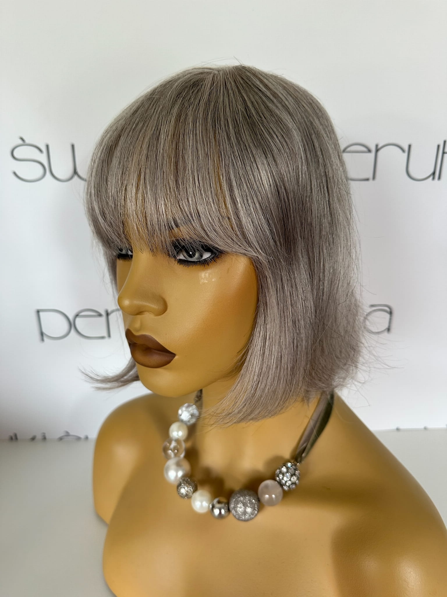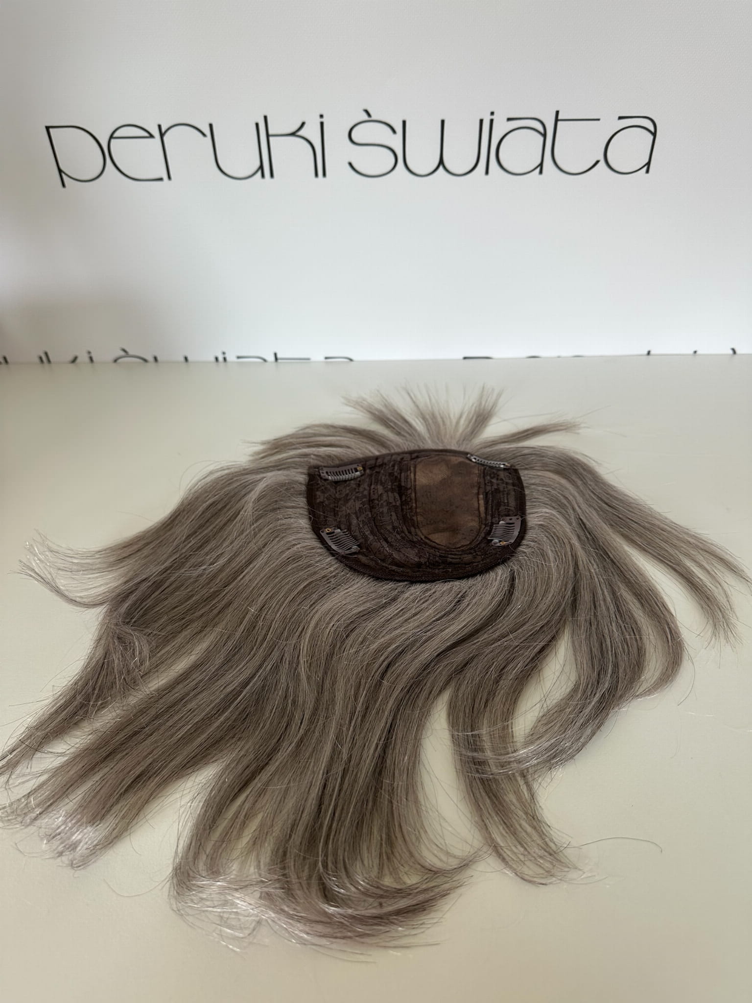 Model Anita, lekki topper/tupet z włosów naturalnych, kolor: siwy