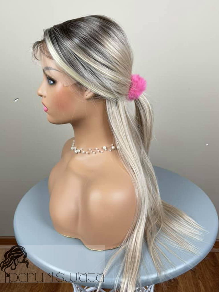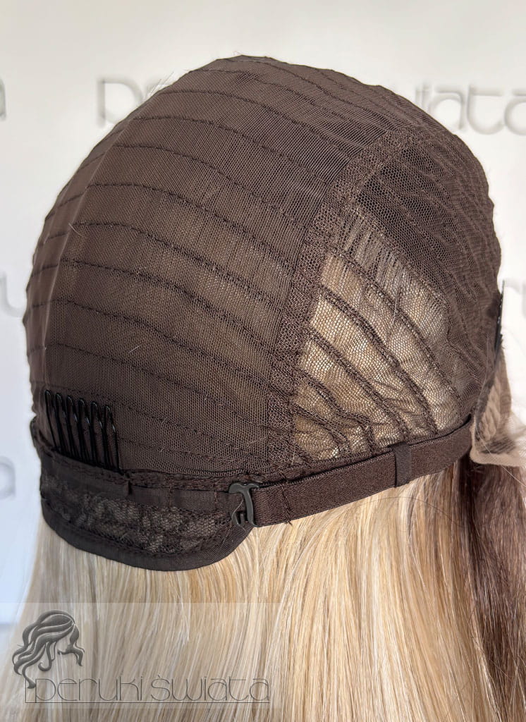 Model Bertie, peruka syntetyczna z kanekalonu japońskiego, ultra light, kolor: mix blondów na brązowym odroście