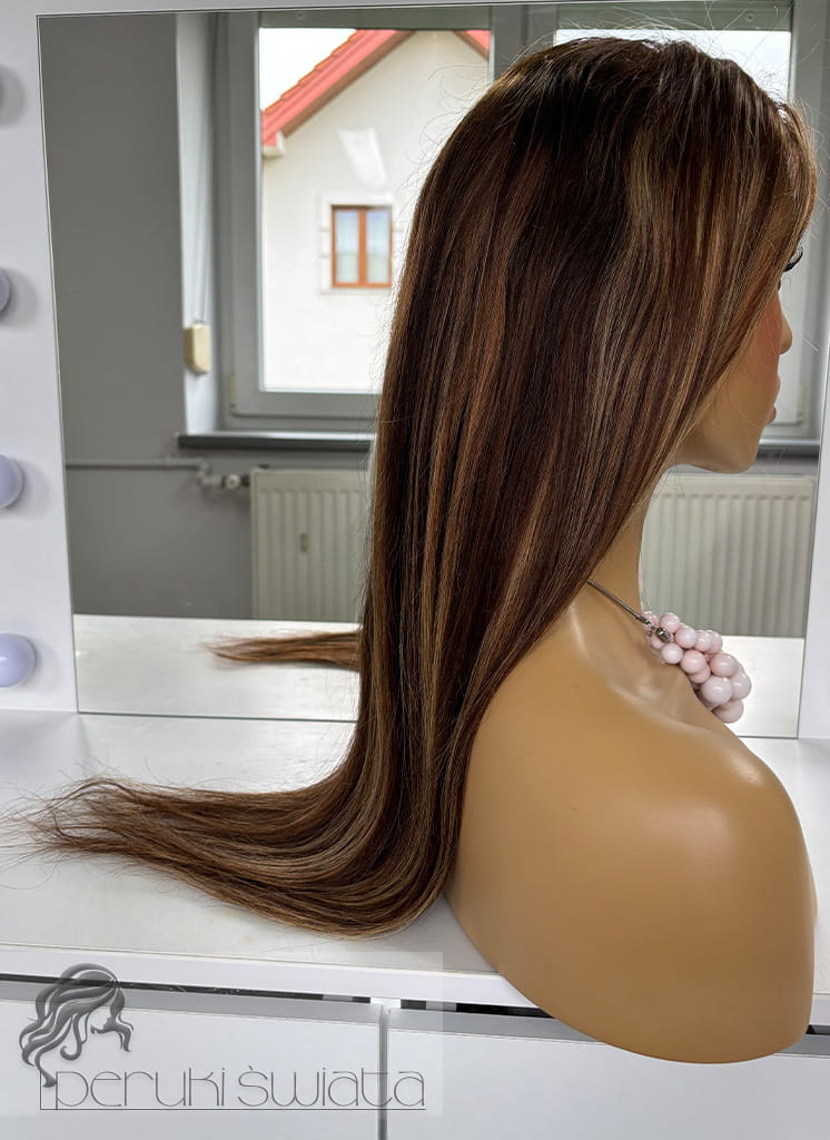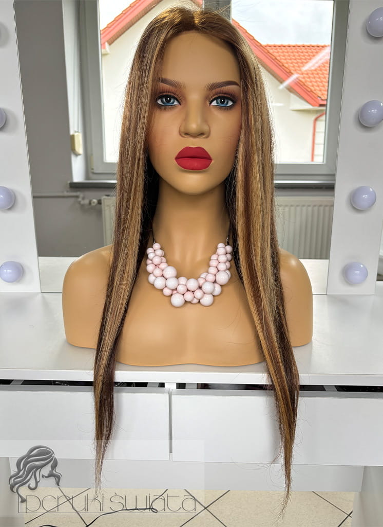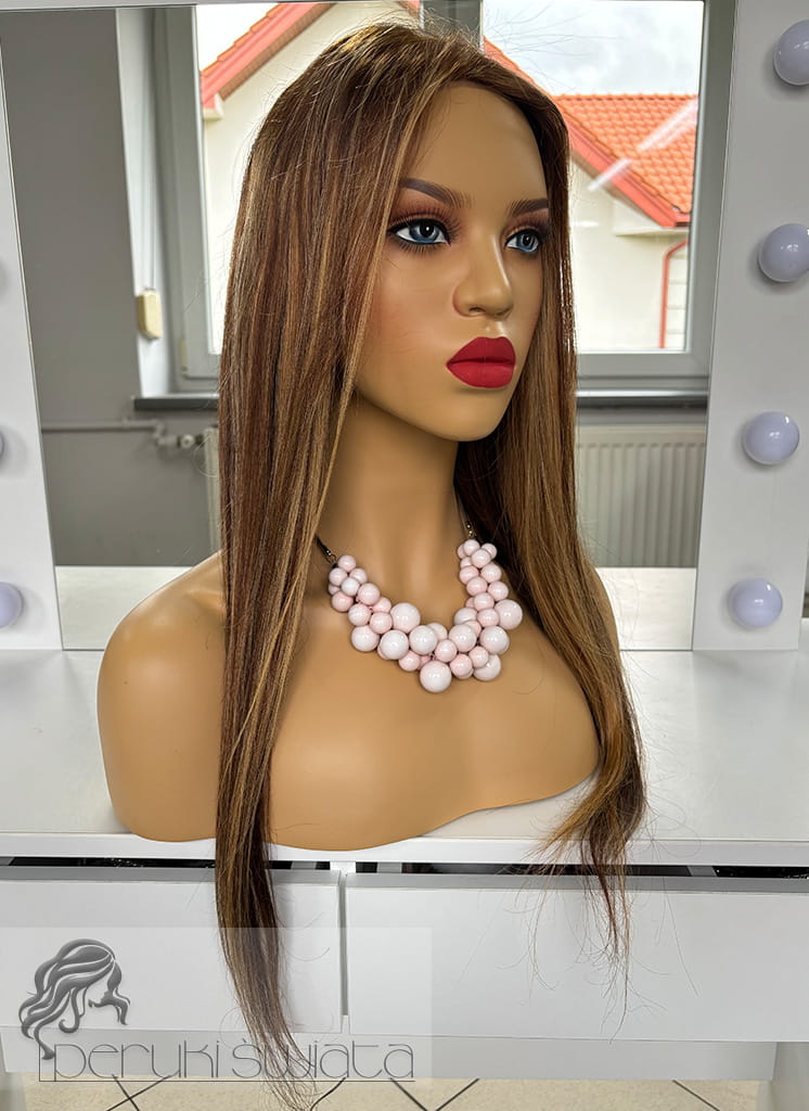 Peruka z włosów naturalnych z częściowo ręcznie tkanym czepkiem, do codziennego użytku