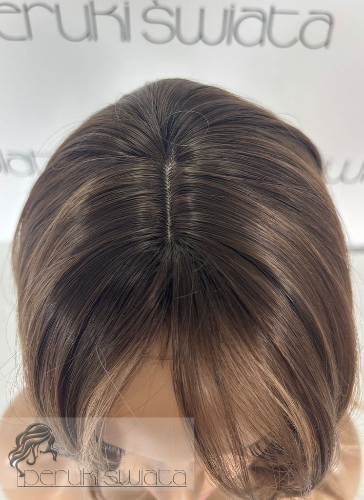Peruka z przedziałkiem z silikonowej wkładki (istnieje możliwość przestylizowania przedziałka w obrębie wkładki silikonowej)