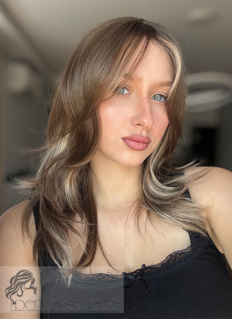 Model Luciana, profesjonalna peruka syntetyczna, kanekalon termoplastyczny, mix brązu z blondem