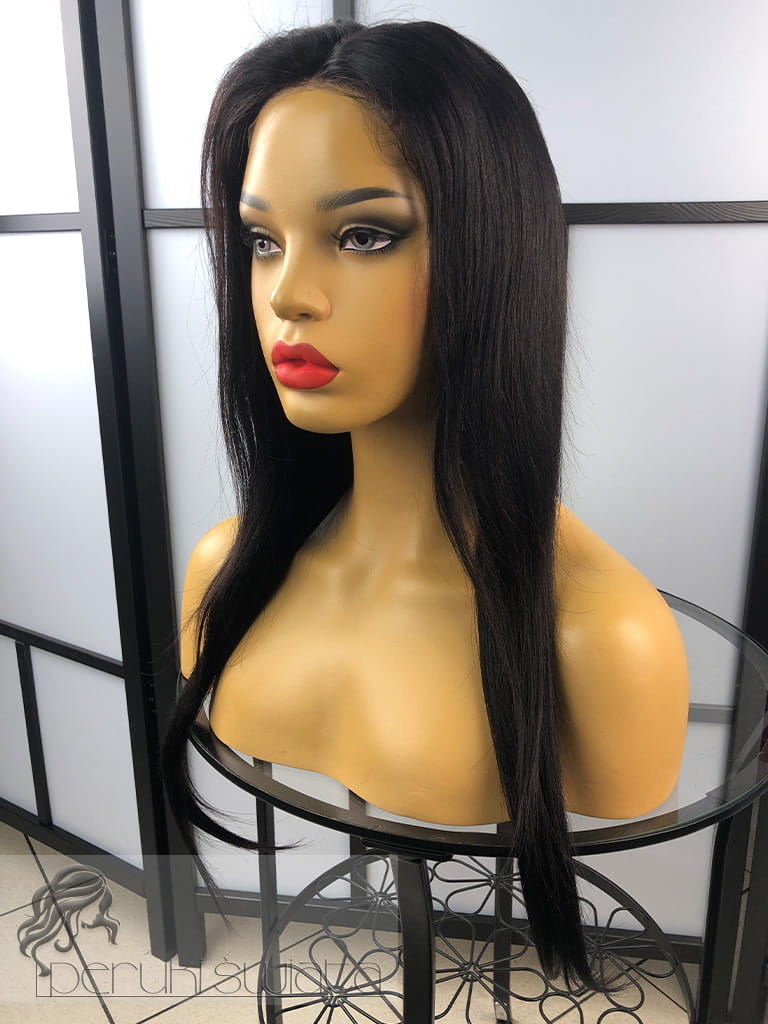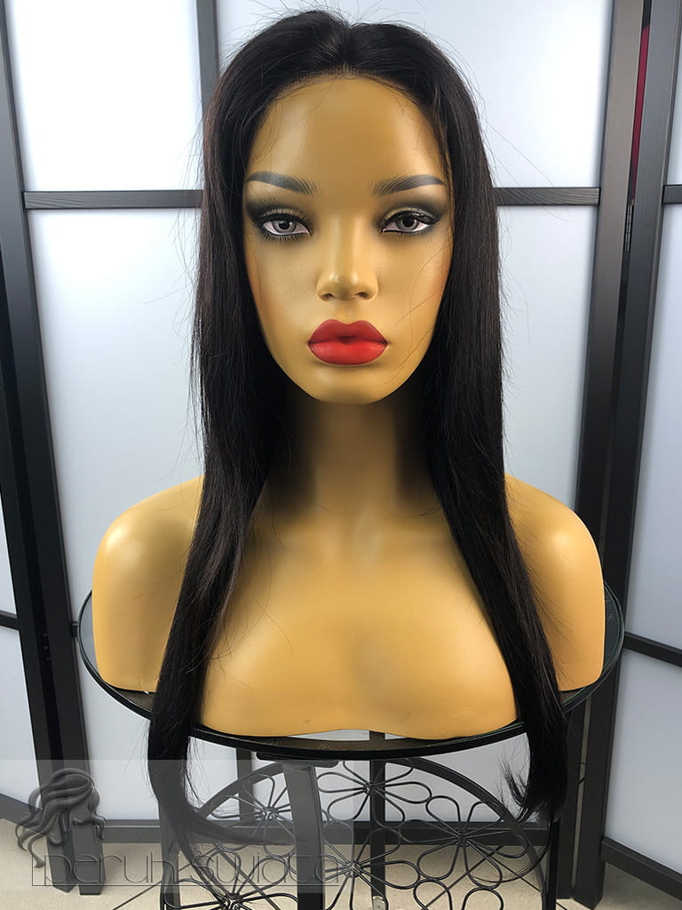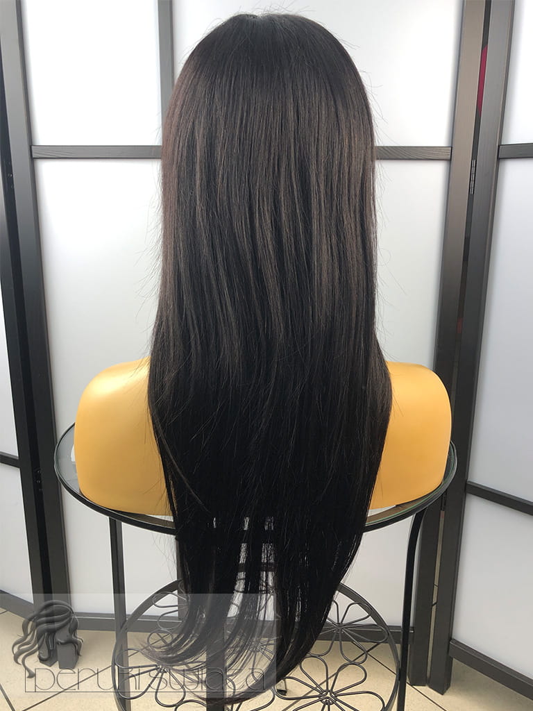 Model Naomi, monotop, nowoczesna peruka z włosów naturalnych z zastosowaniem sizera dla osób z małymi głowami lub po chemioterapii, naturalna czerń 1B