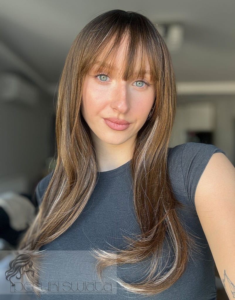 Model Norah, peruka syntetyczna z kanekalonu typu "true hair", kolor: jasny brąz z refleksami