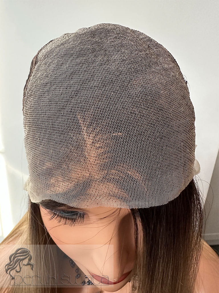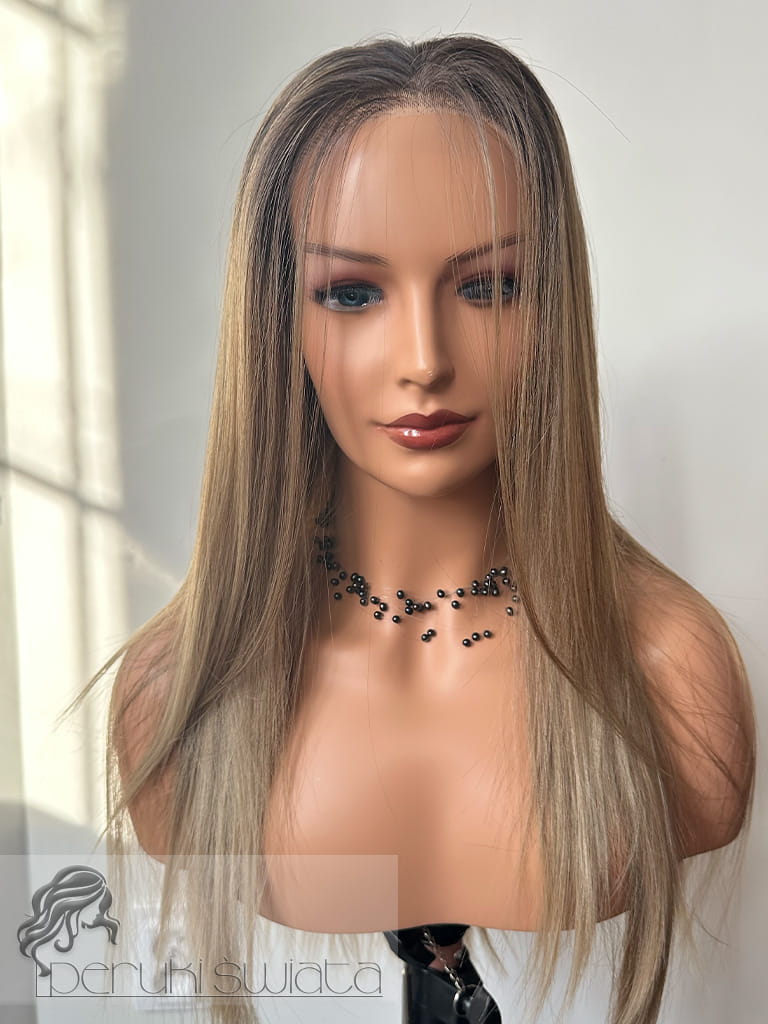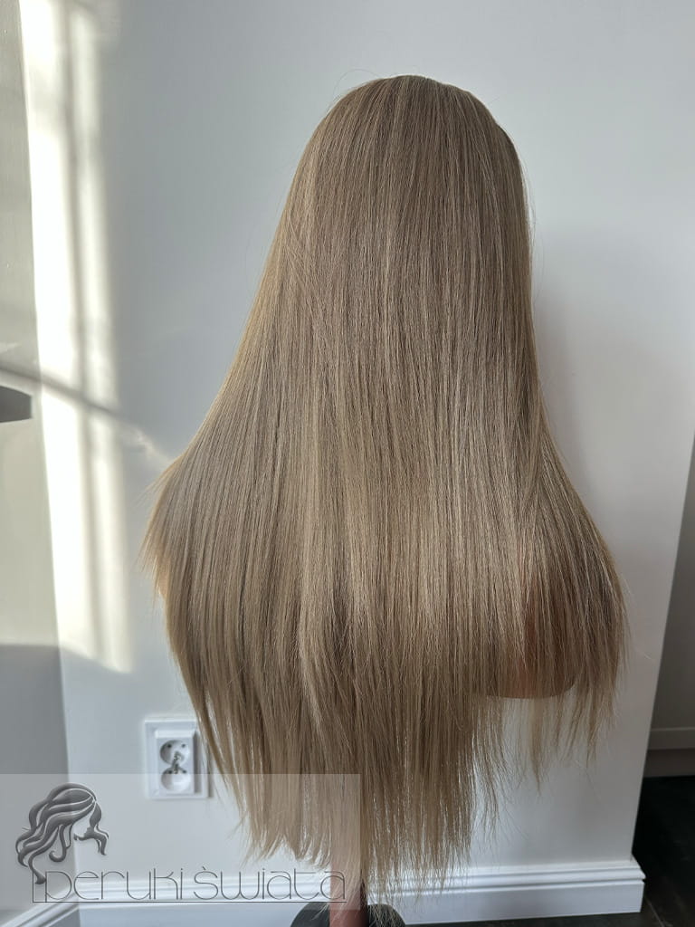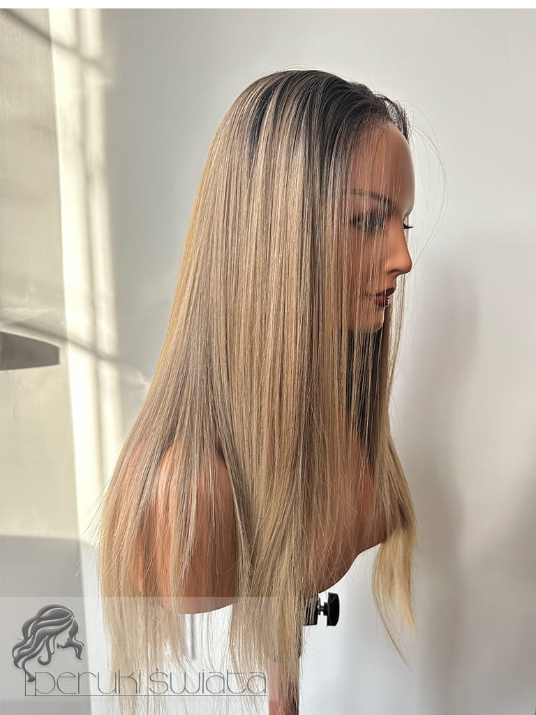 Model Sonia, peruka syntetyczna z kanekalonu, słowiański blond z odrostem, czepek full lace front