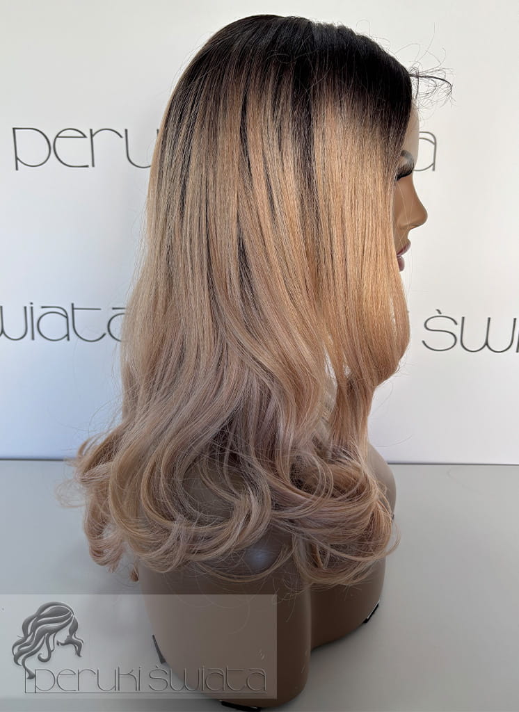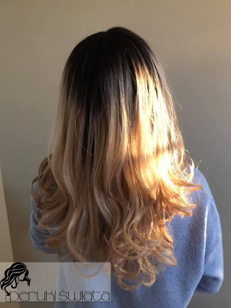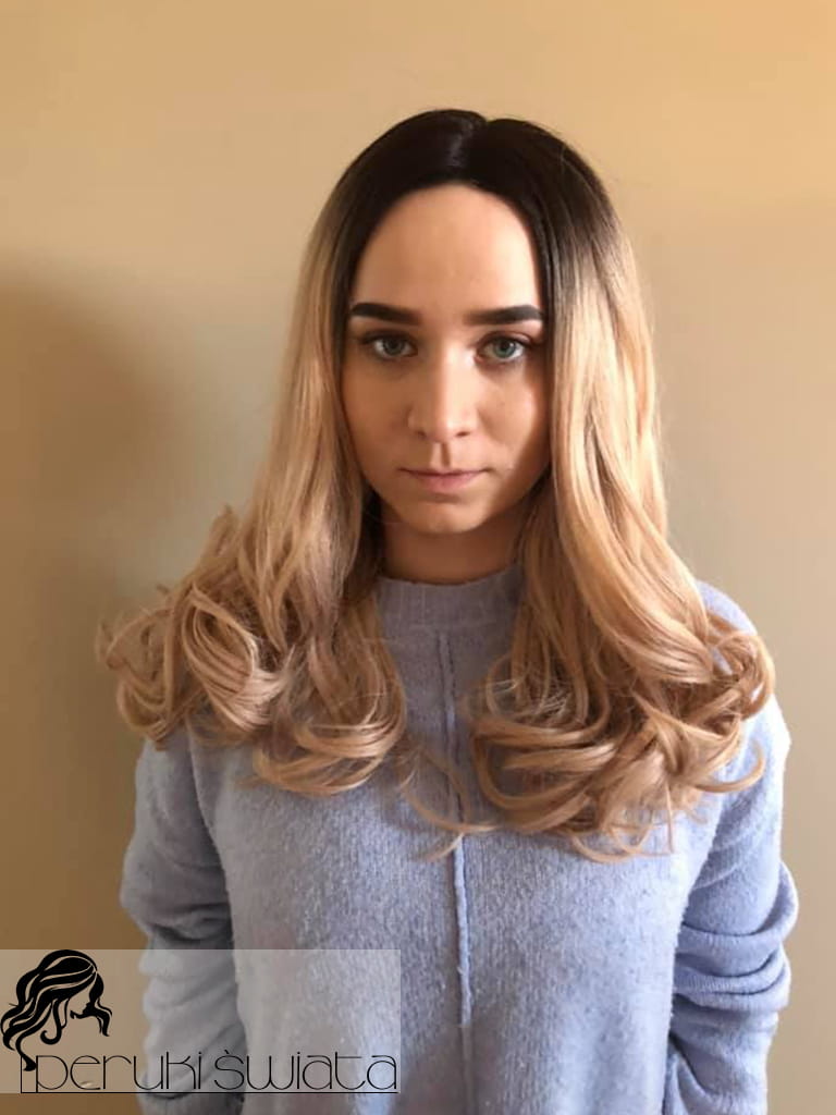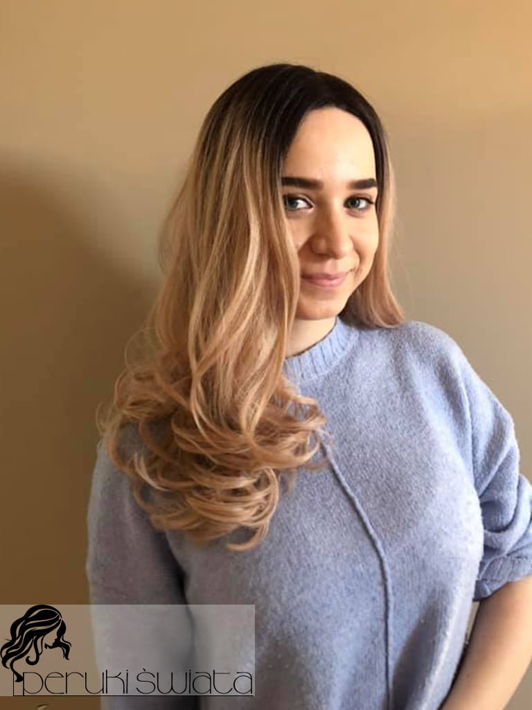 Peruka 390A, kanekalon premium 3D, kolor: ombre z ciepłym kremowym blondem
