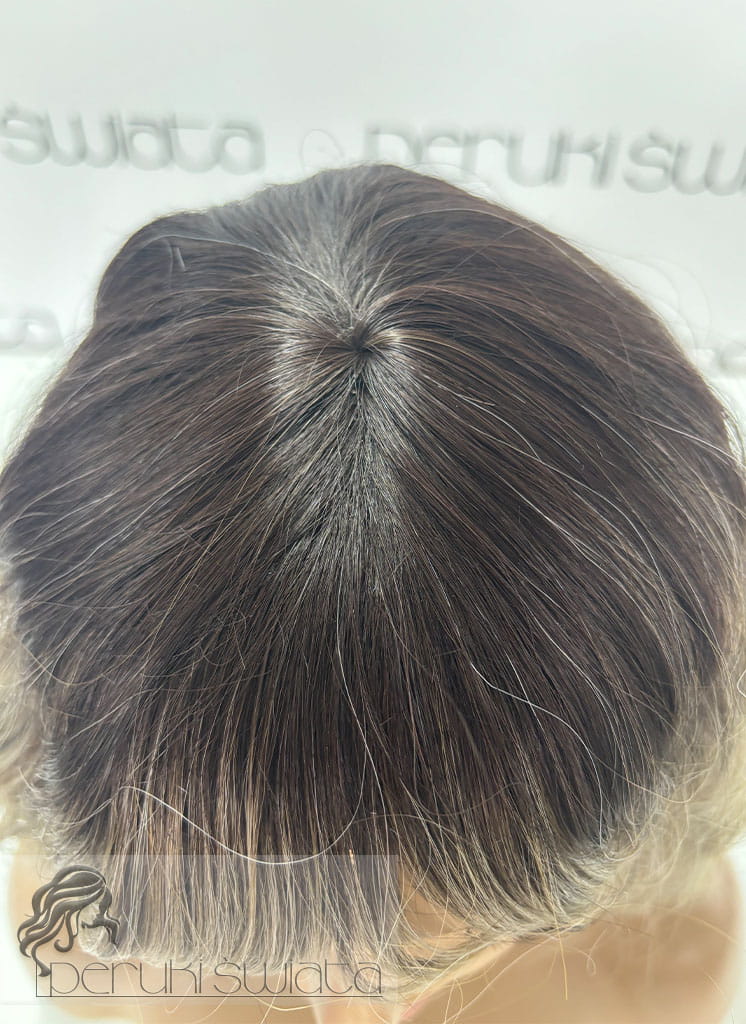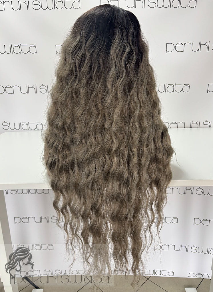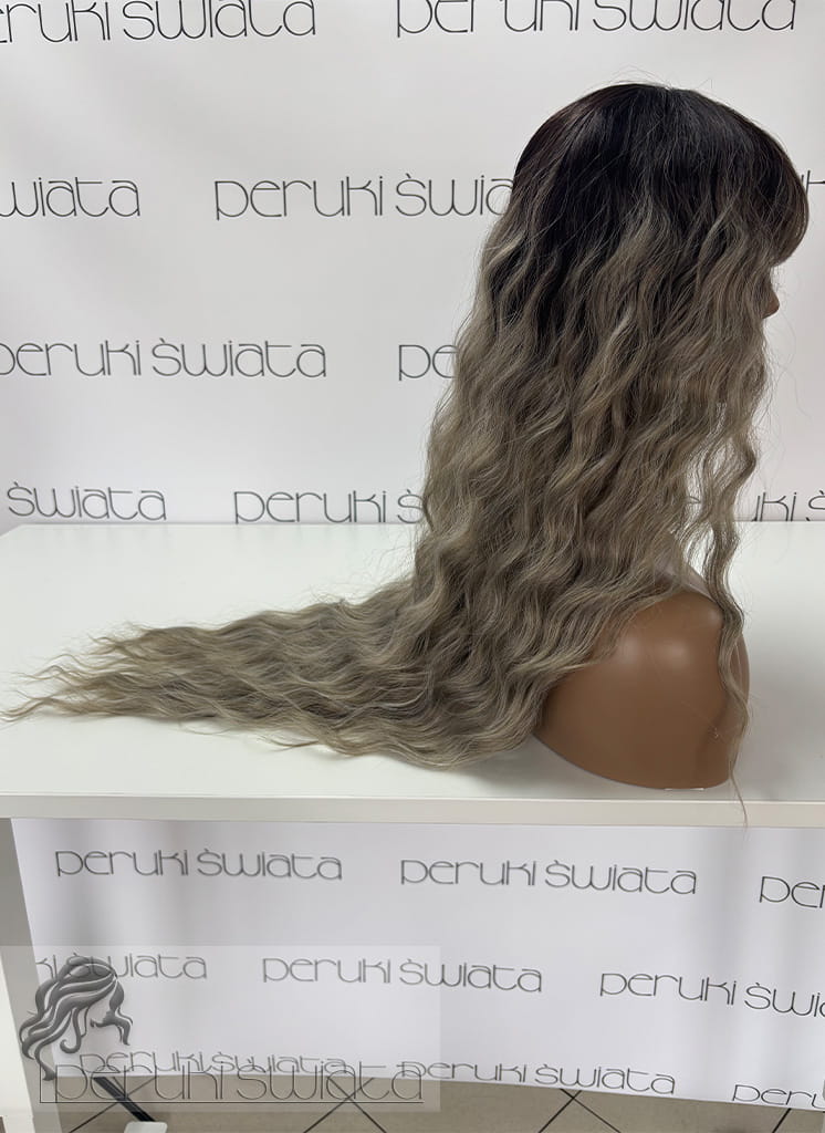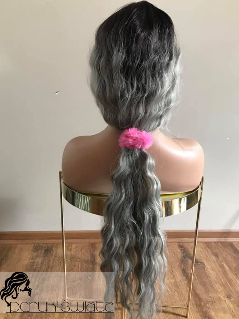 Peruka AL61, kanekalon premium 3D, fale, kolor: popielaty z czarnym odrostem
