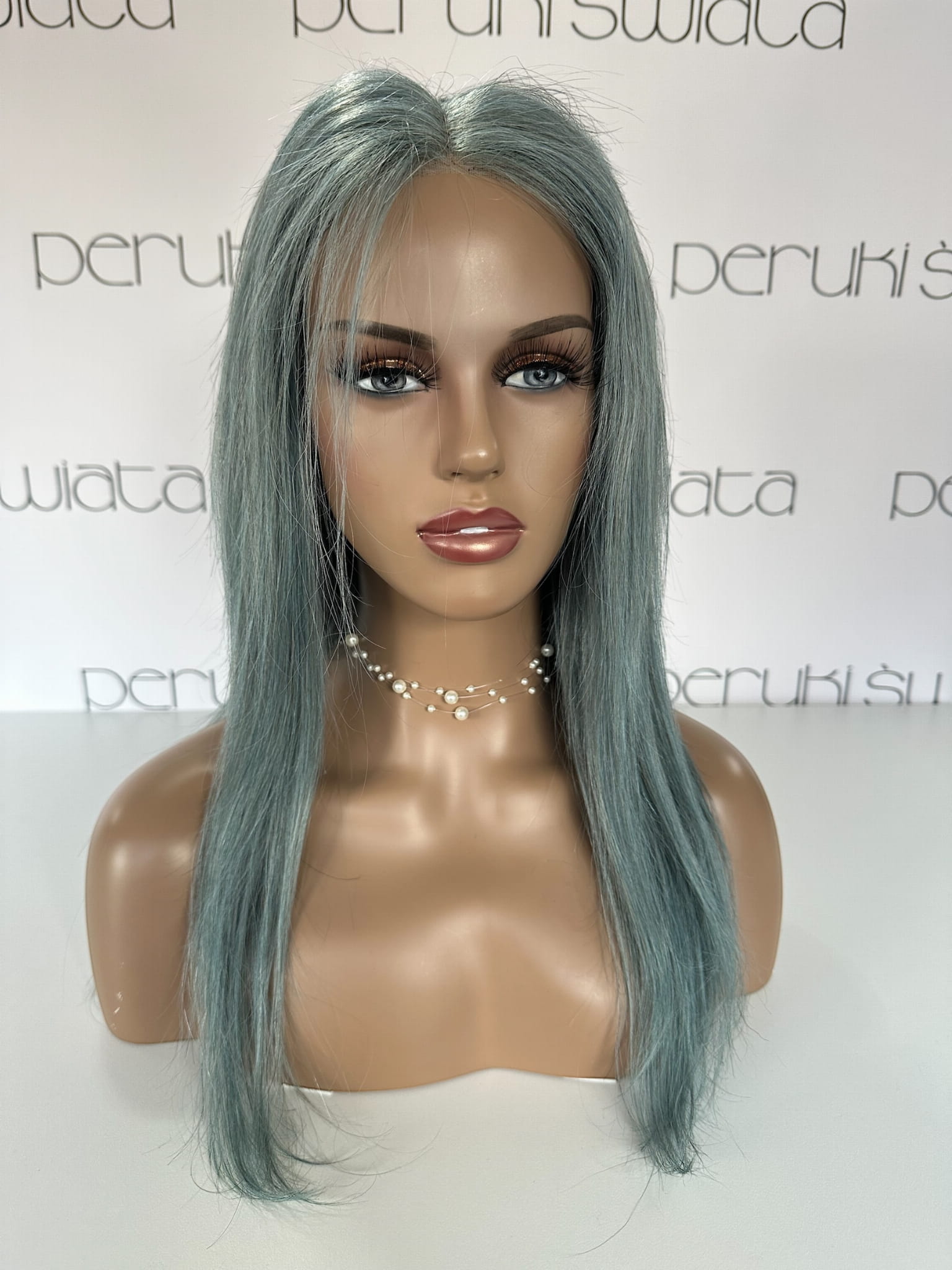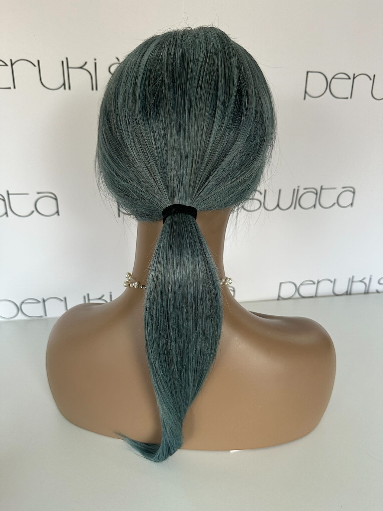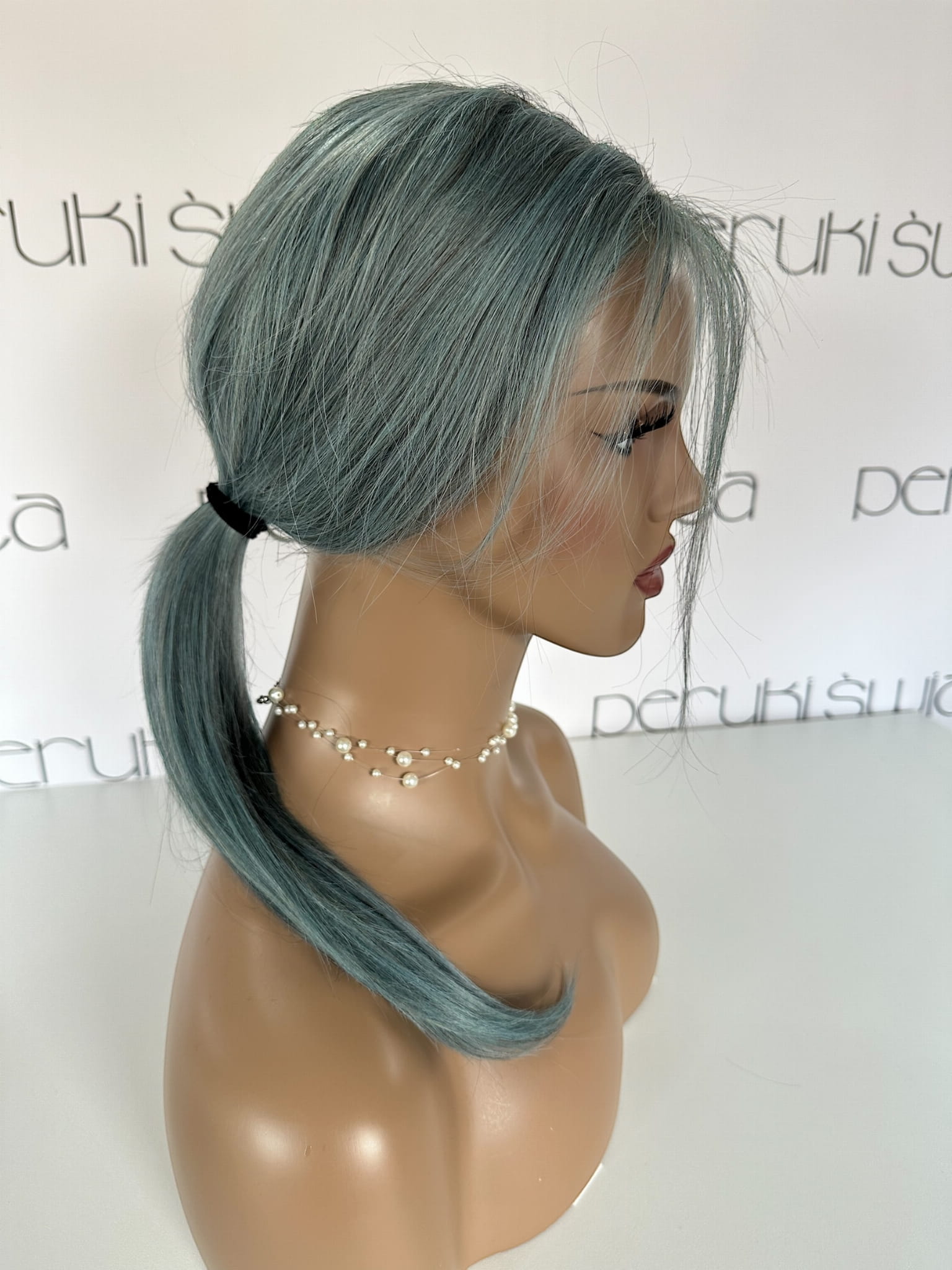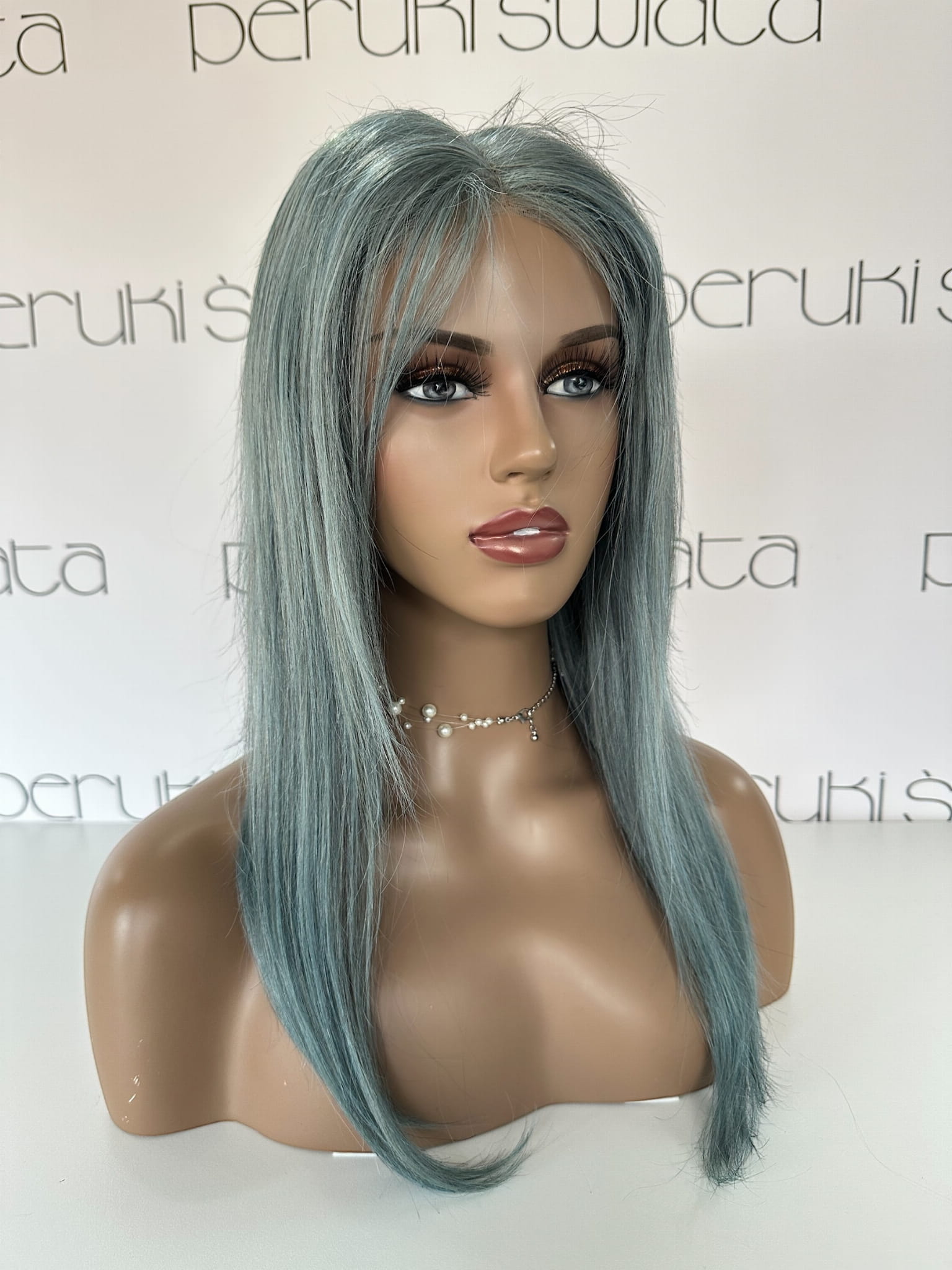 Peruka Asmara, włosy naturalne, brudny błękit (blue grey)