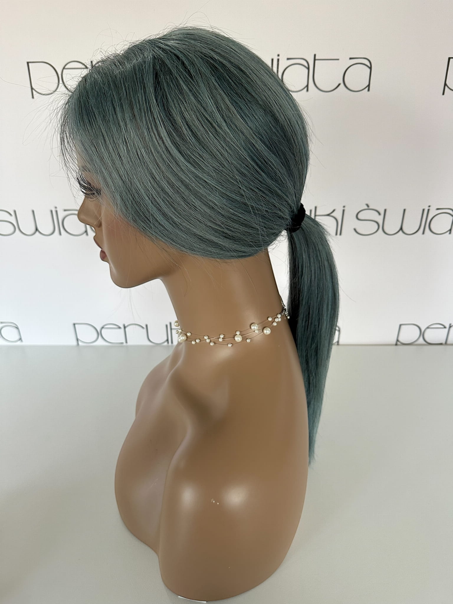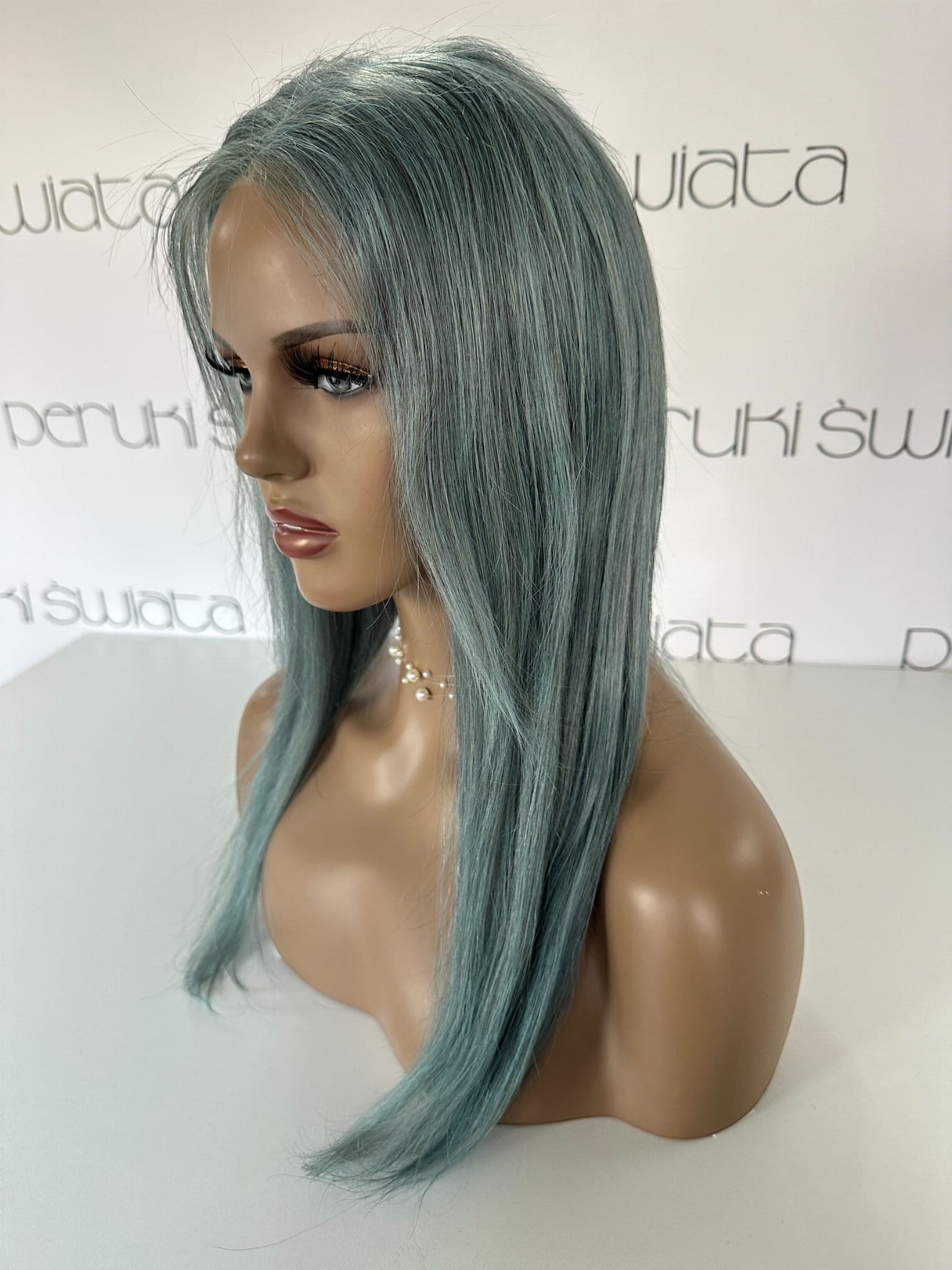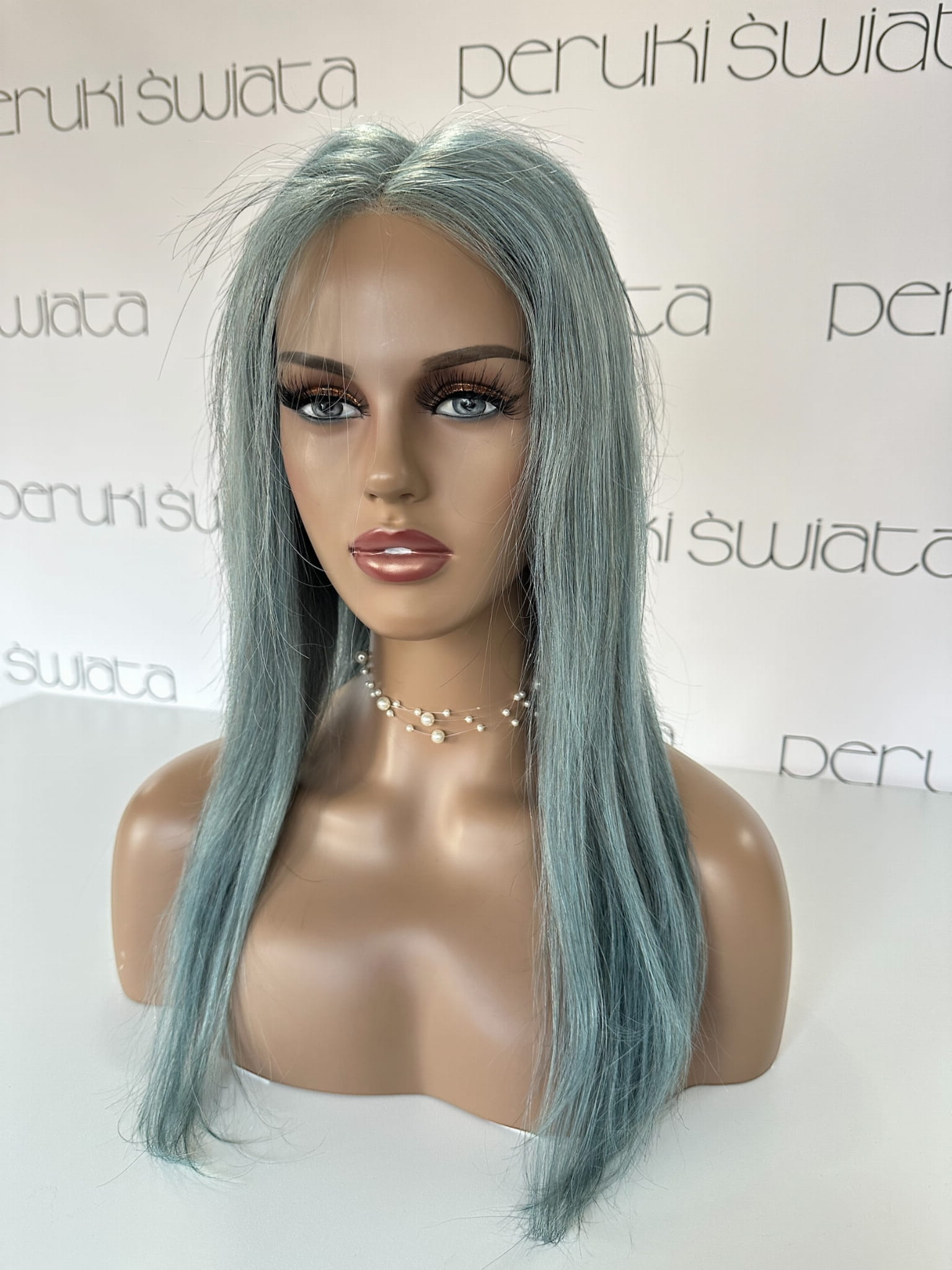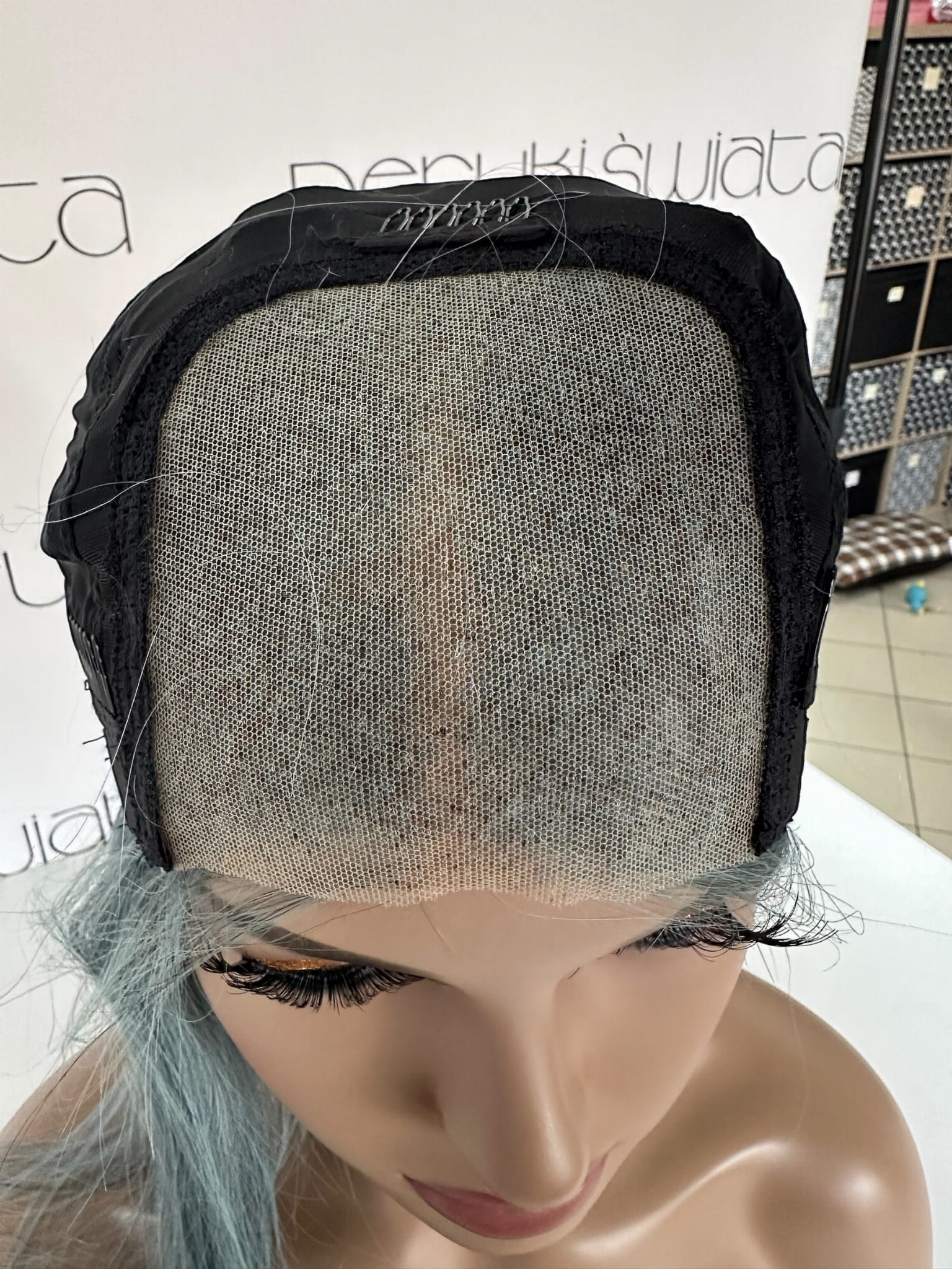 Peruka Asmara, włosy naturalne, brudny błękit (blue grey)
