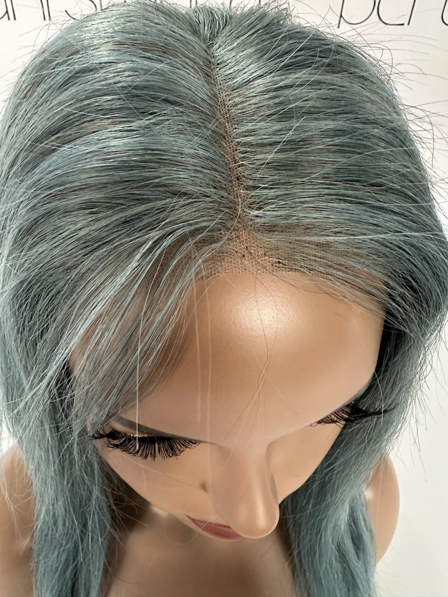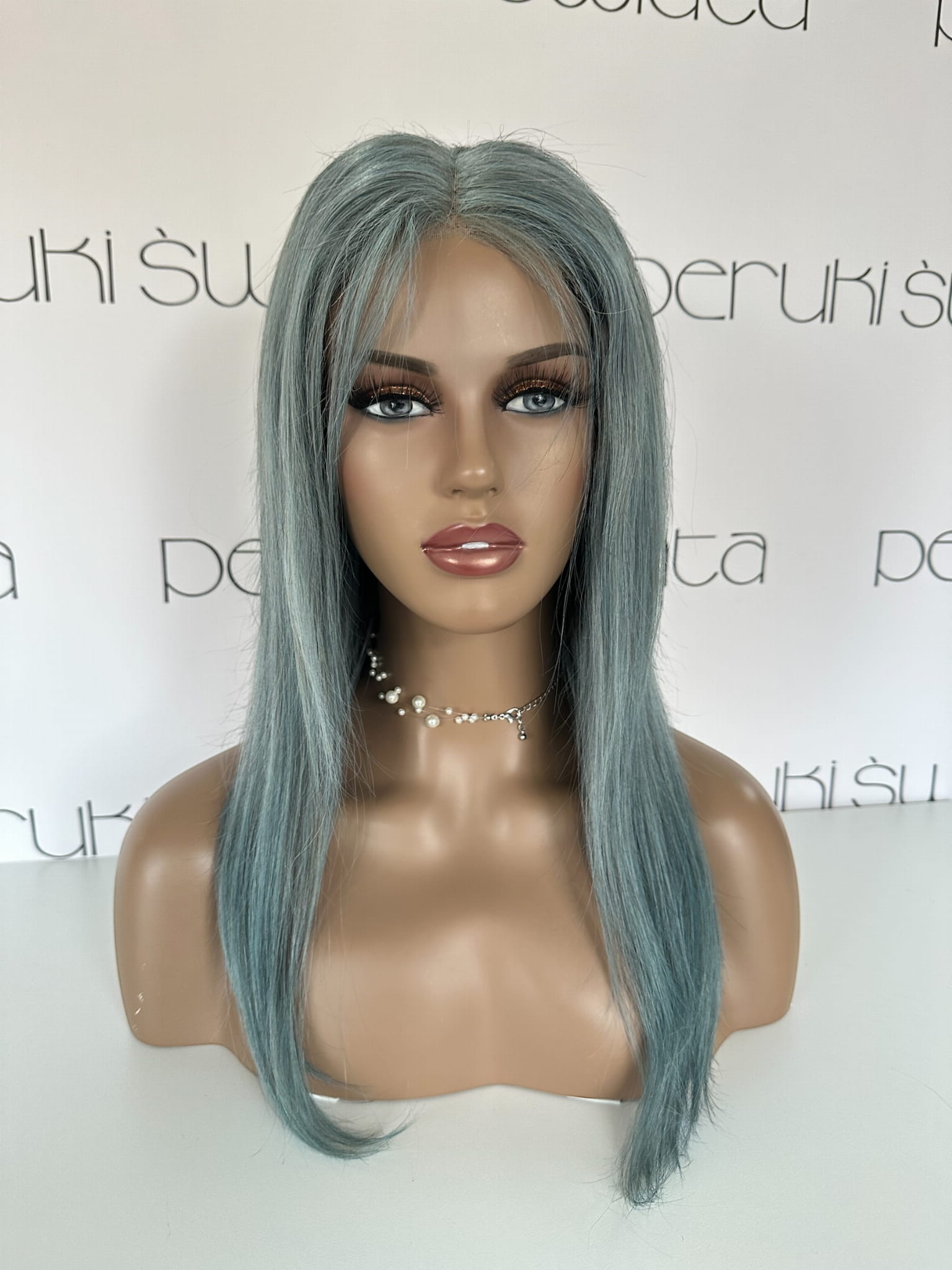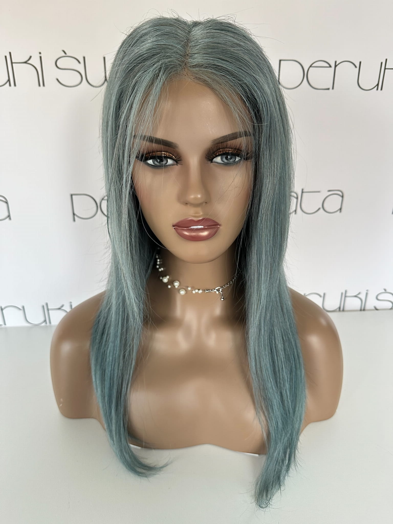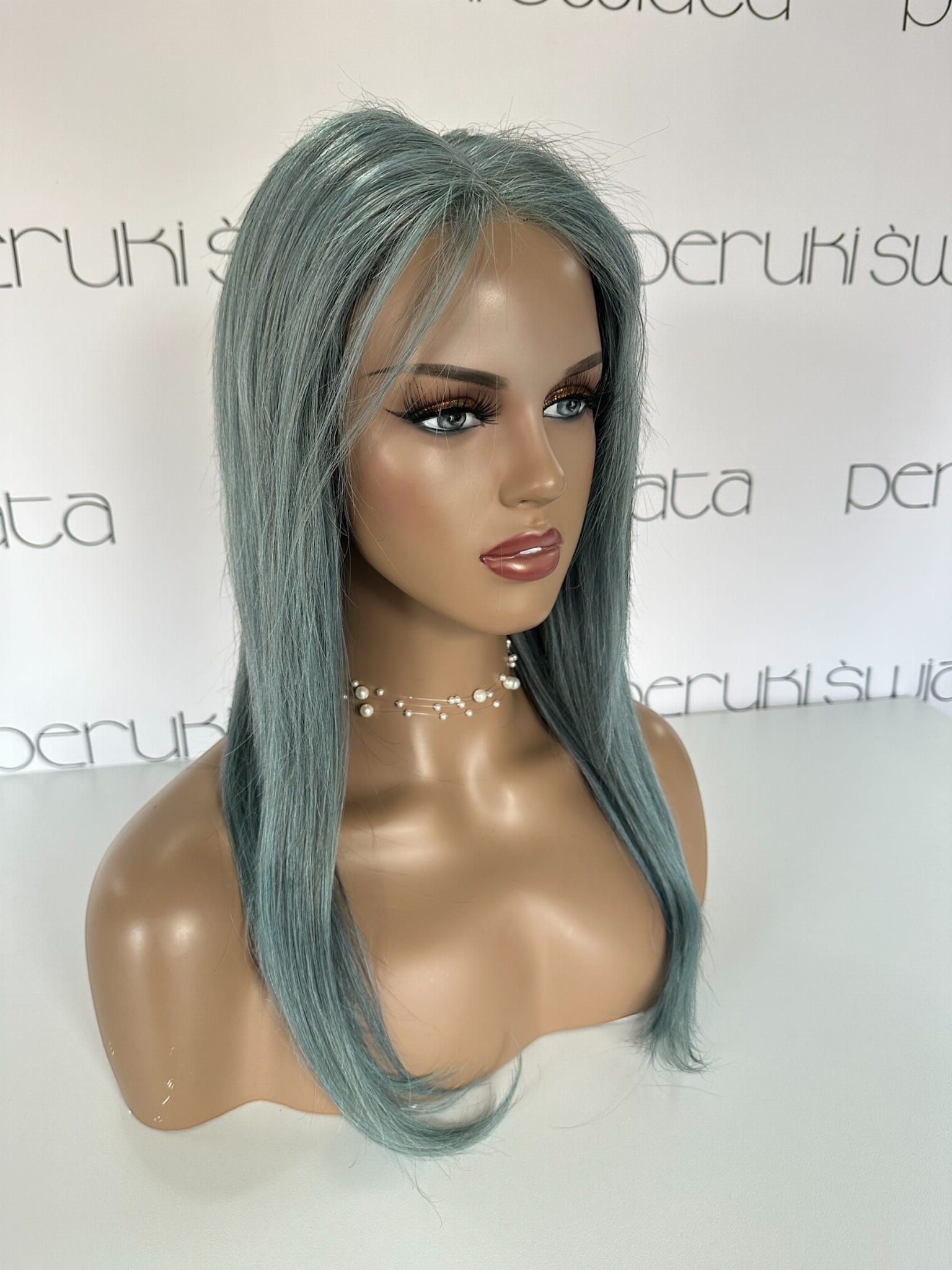 Peruka Asmara, włosy naturalne, brudny błękit (blue grey)