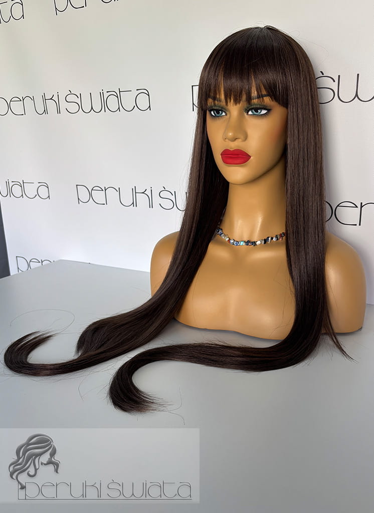 Peruka Astrid, long bob z gęstą grzywką, kolor: brąz nr 8