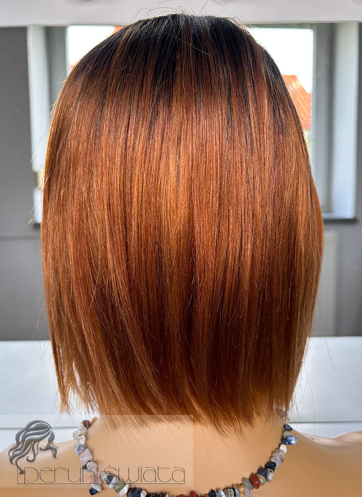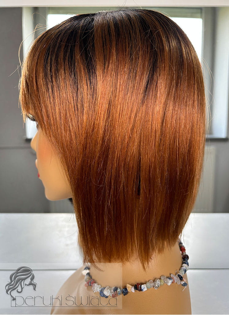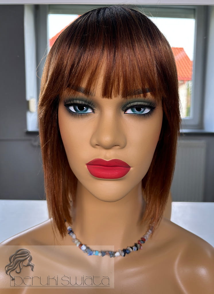Peruka Briar, bob z grzywką, włosy naturalne, kolor: rudy na odroście