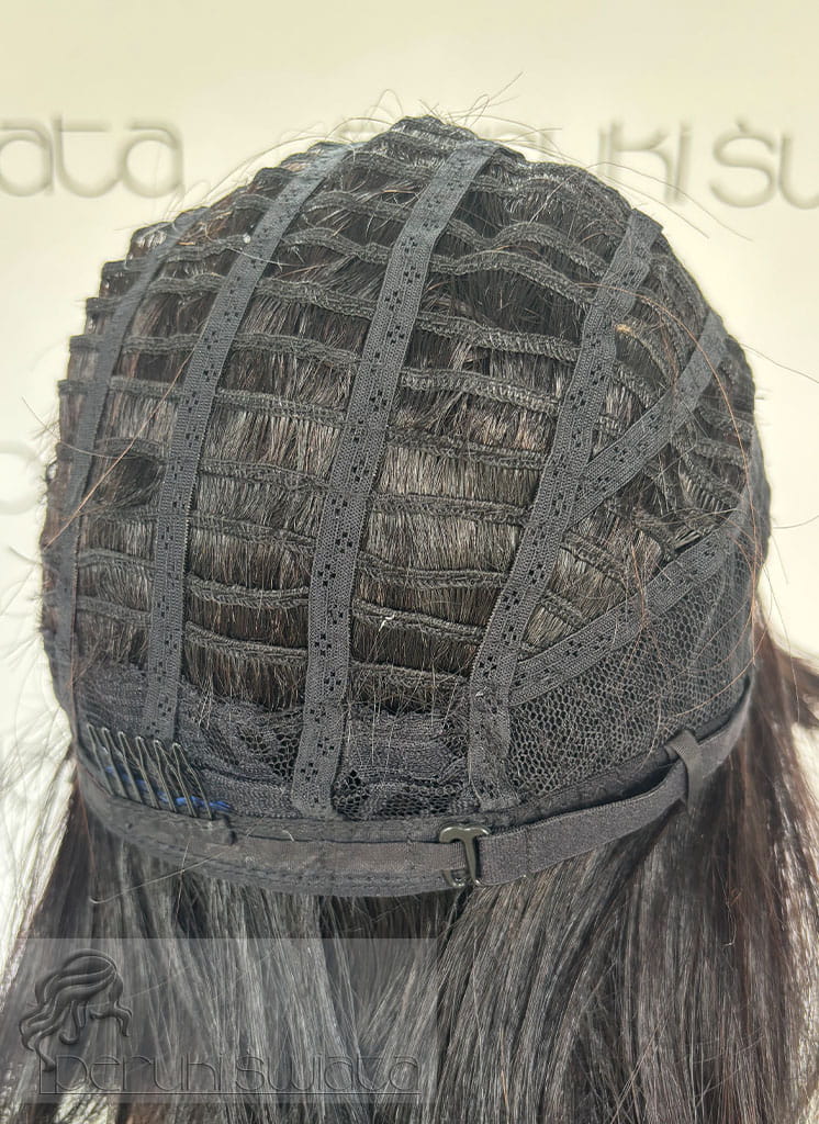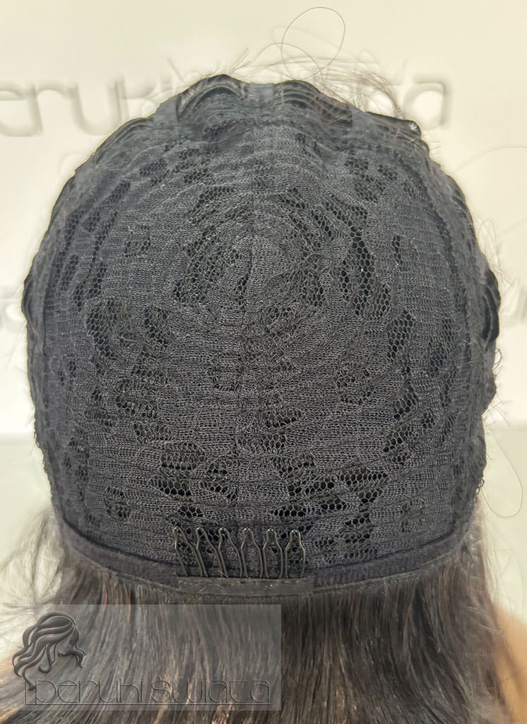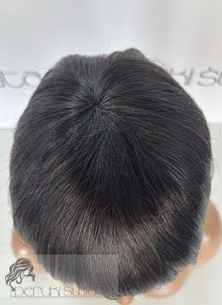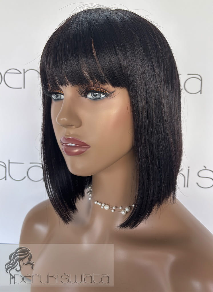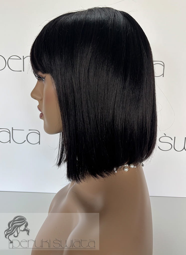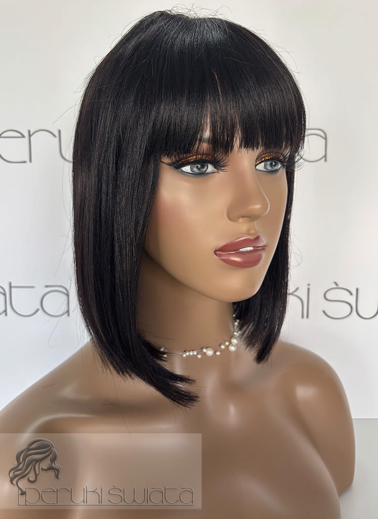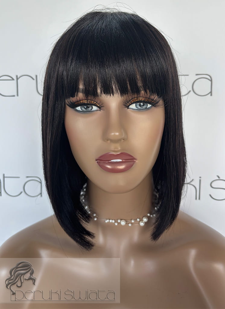 Peruka Britanny, bob z grzywką, włosy naturalne, kolor: czerń naturalna z delikatnymi refleksami
