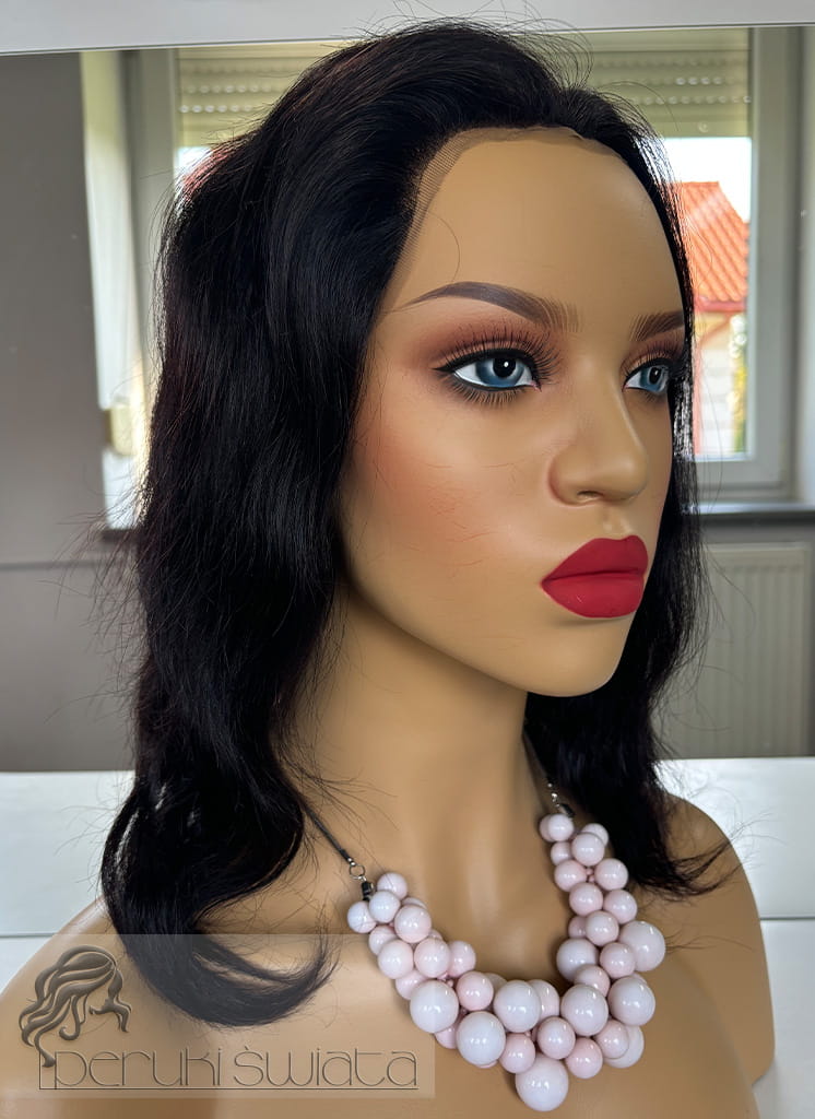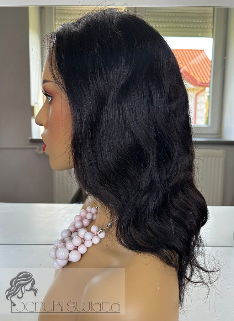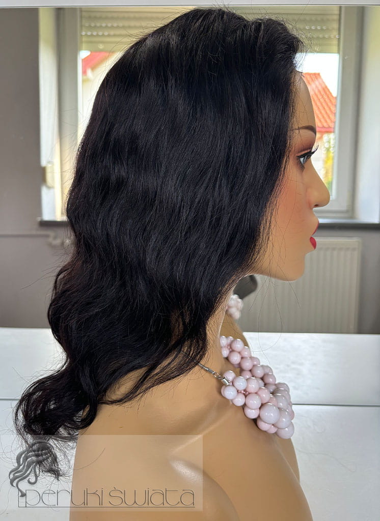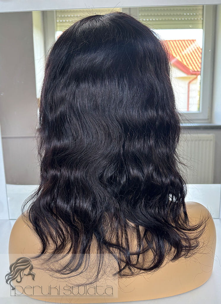 Peruka Celia, peruka naturalna ręcznie tkana na siatce, fale, kolor: ciemny brąz