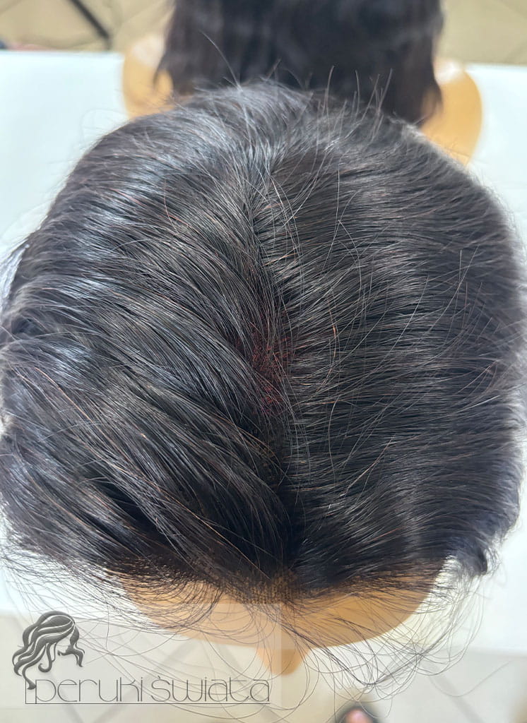 Peruka z włosów naturalnych, ręcznie tkana na siatce