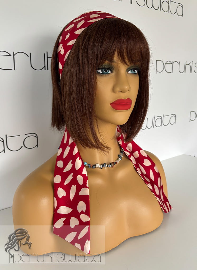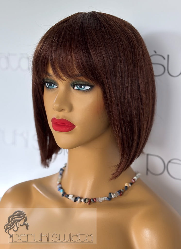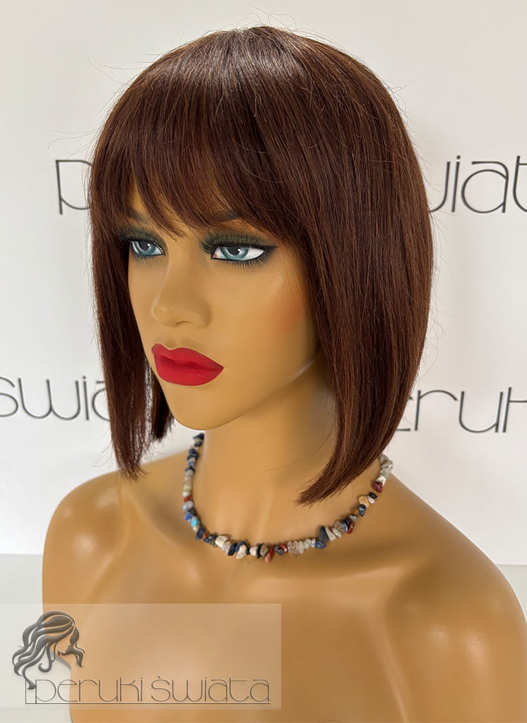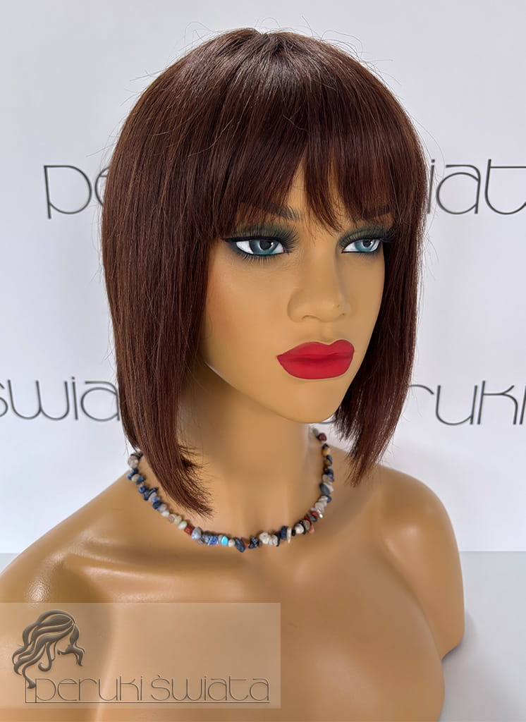 Peruka Clementine, bob z grzywką, włosy naturalne, kolor: kasztanowy brąz