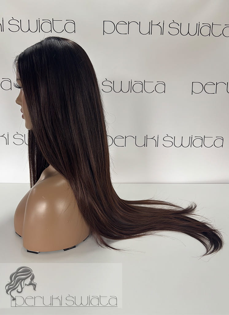 Peruka Creole, czepek typu: full lace, kanekalon termoplastyczny, sombre: gorzka czekolada z mleczną