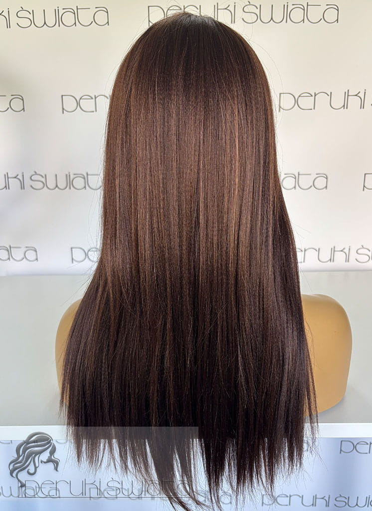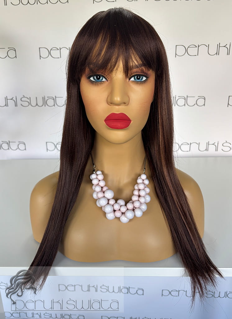 Peruka DB183, kanekalon, long bob z grzywką, kolor: brąz z refleksami