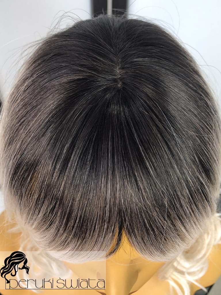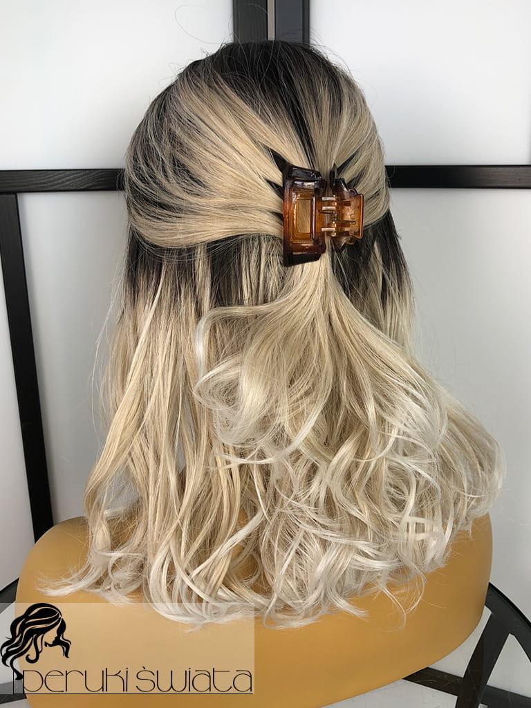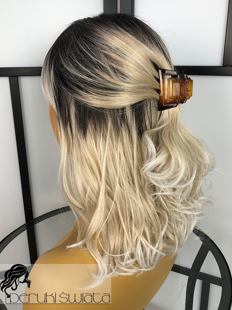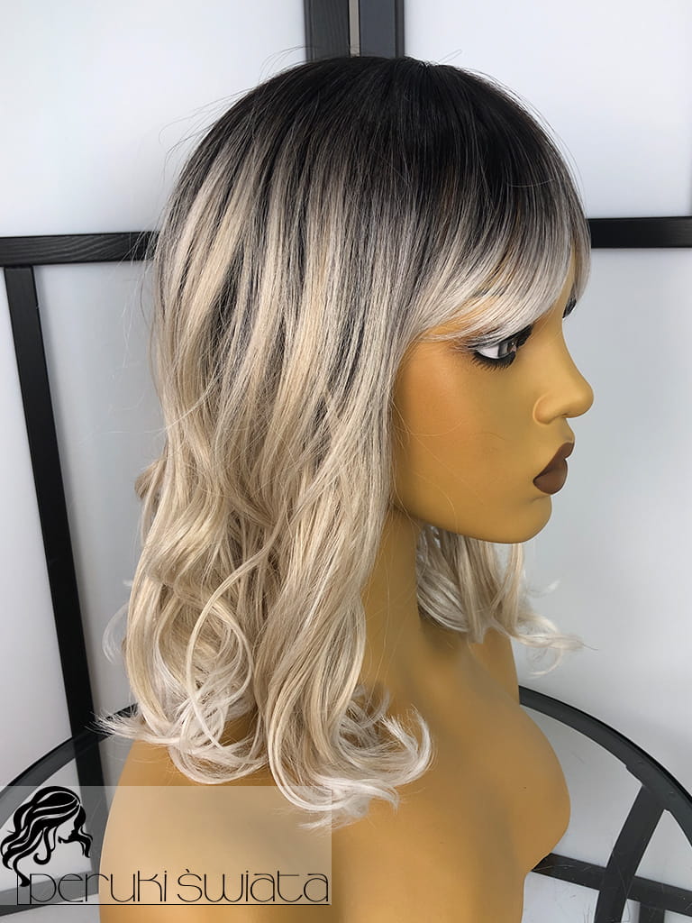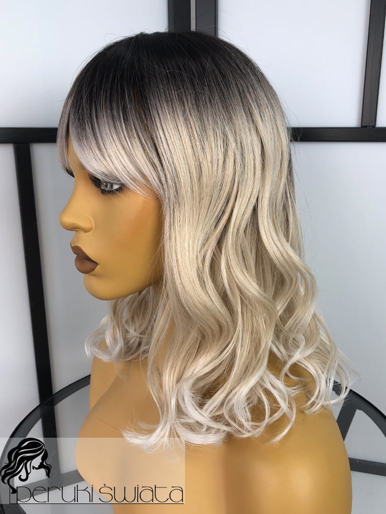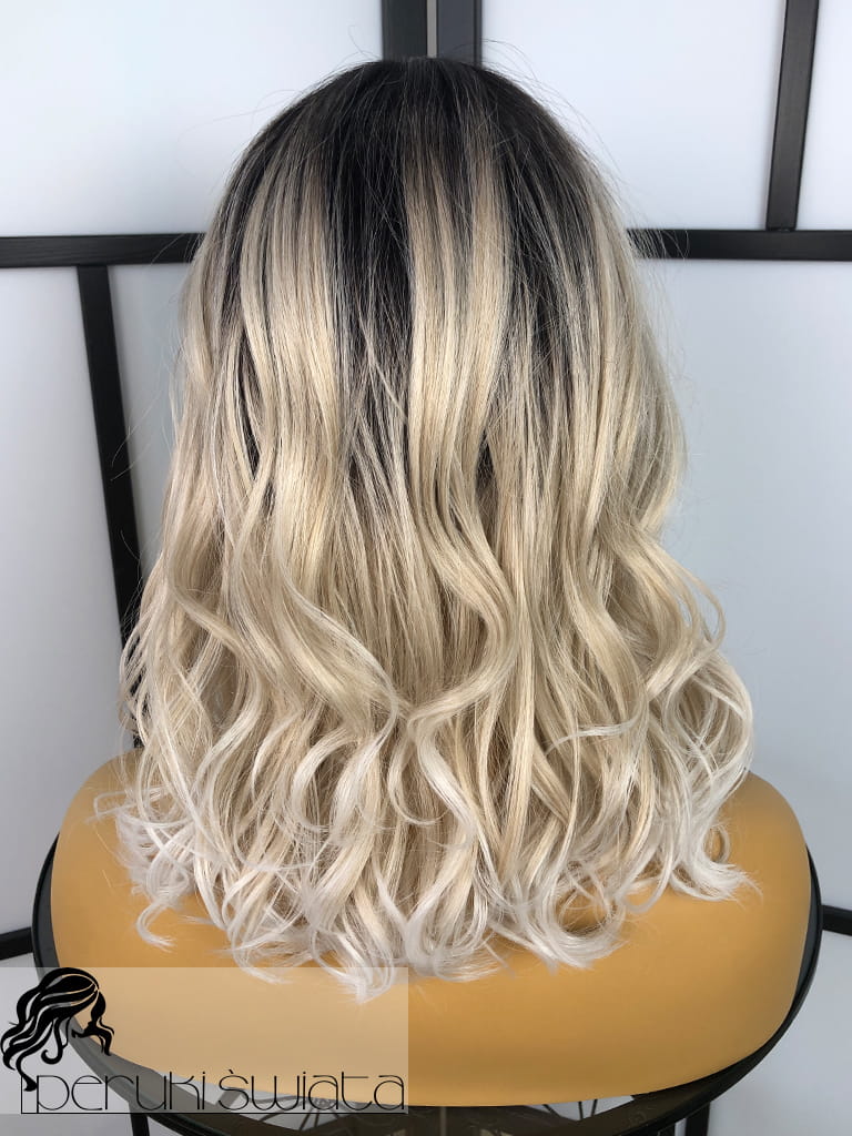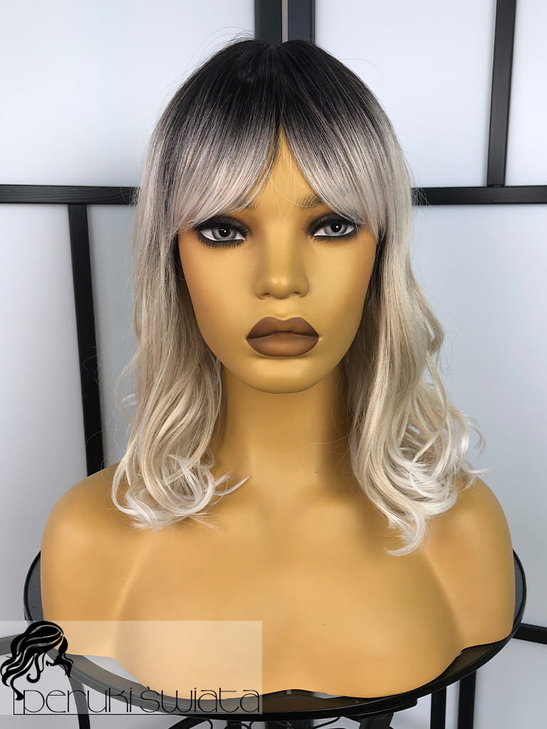 Peruka DB35, kanekalon 3D, bob francuski, loki/fale, kolor: jasny blond na odroście