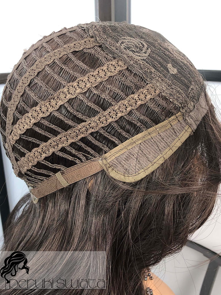 Silikonowa imitacja skóry na górze peruki, w jej obrębie można przestylizować przedziałek