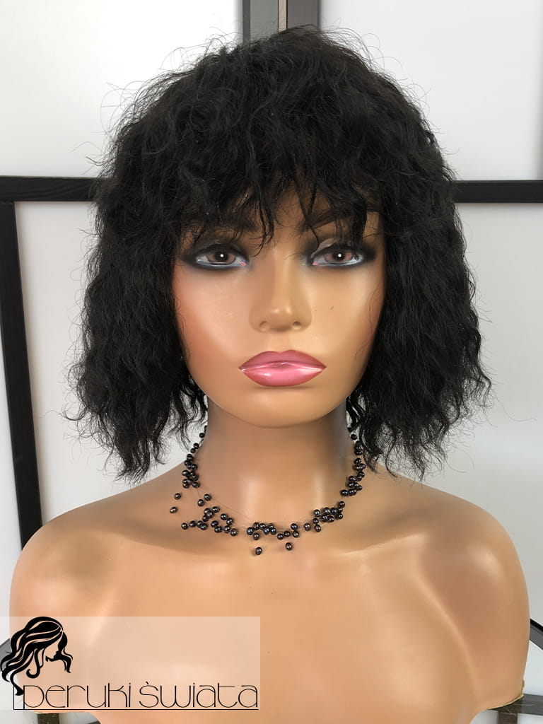 Peruka Denis, włos mieszany: ok. 70% włos naturalny, bob francuski, kolor: czerń