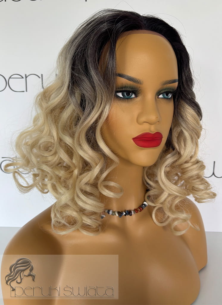 Peruka EK41, bob, ultra light, kanekalon premium, fale/lok, kolor: mix blond nr 613 na czarnym odroście