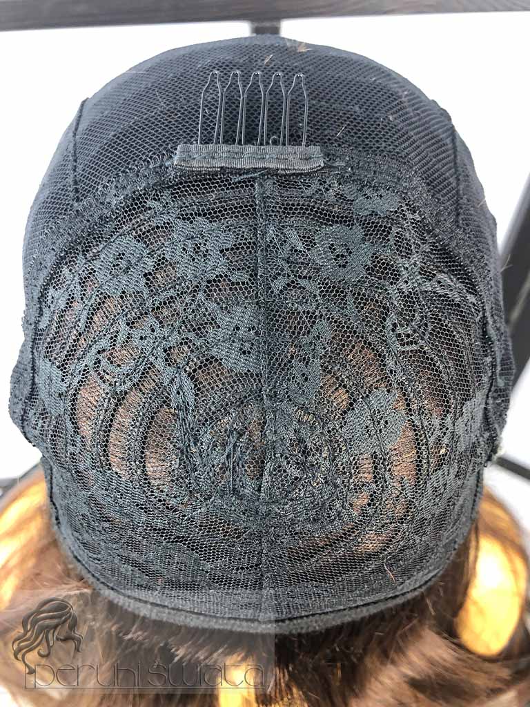Komfortowy, oddychający czepek z regulowanym obwodem i z grzebykami dla lepszej stabilności peruki, dodatkowo czepek posiada dodatkową regulację głębokości (sizer 2in1) dla osób z mniejszymi głowami, peruka polecana osobom w trakcie utraty włosów podczas chemioterapii z dużym ubytkiem włosów, dzięki zastosowanej podwójnej regulacji można dokładnie dopasować rozmiar peruki