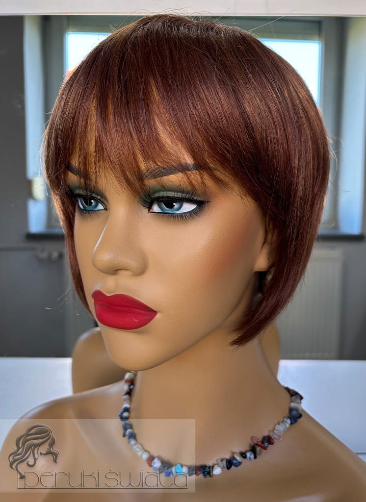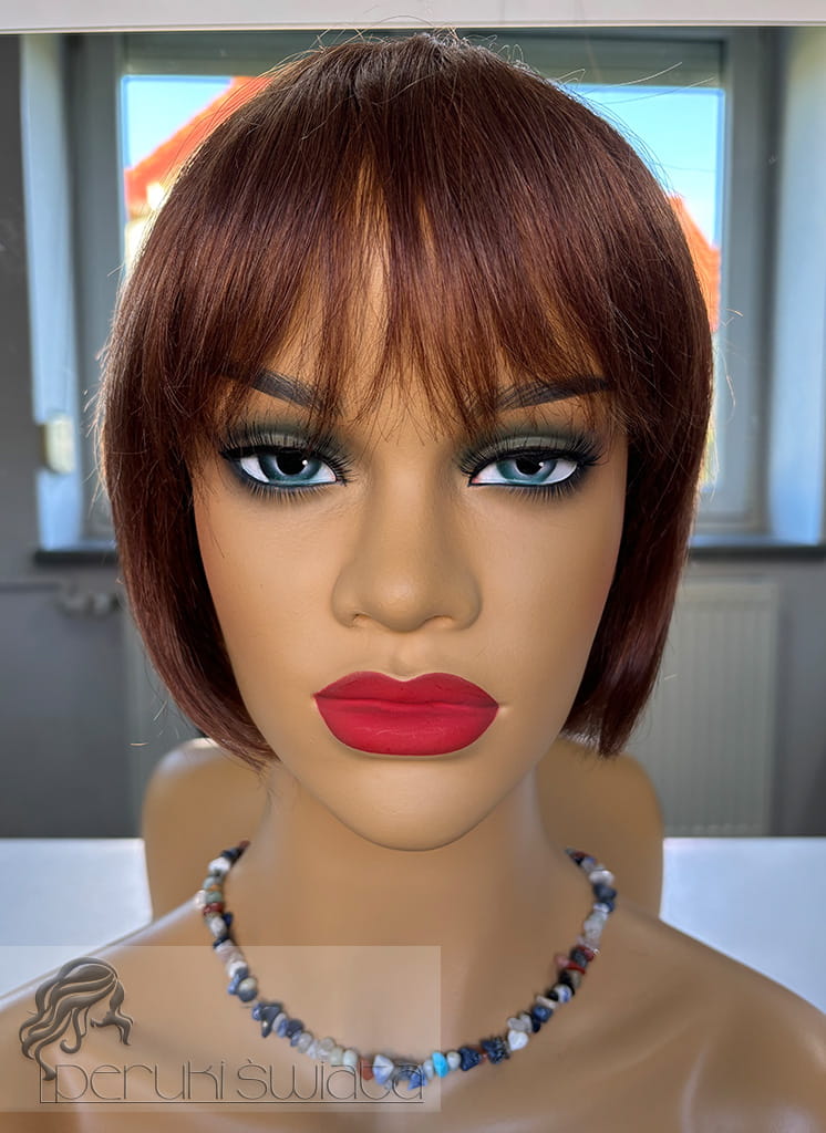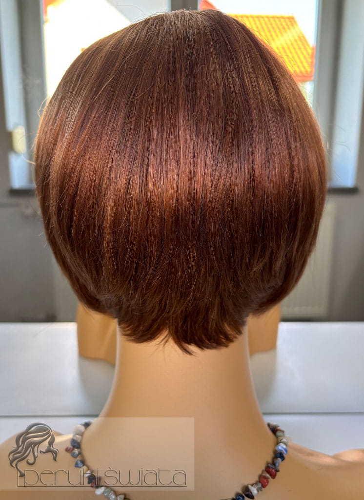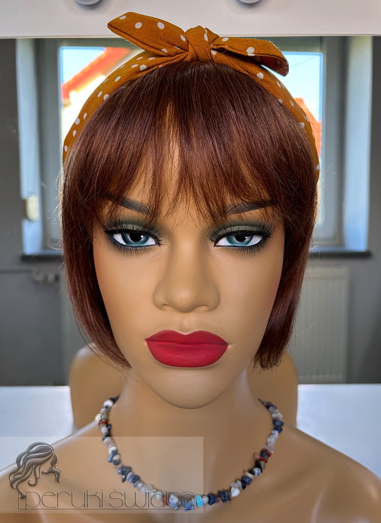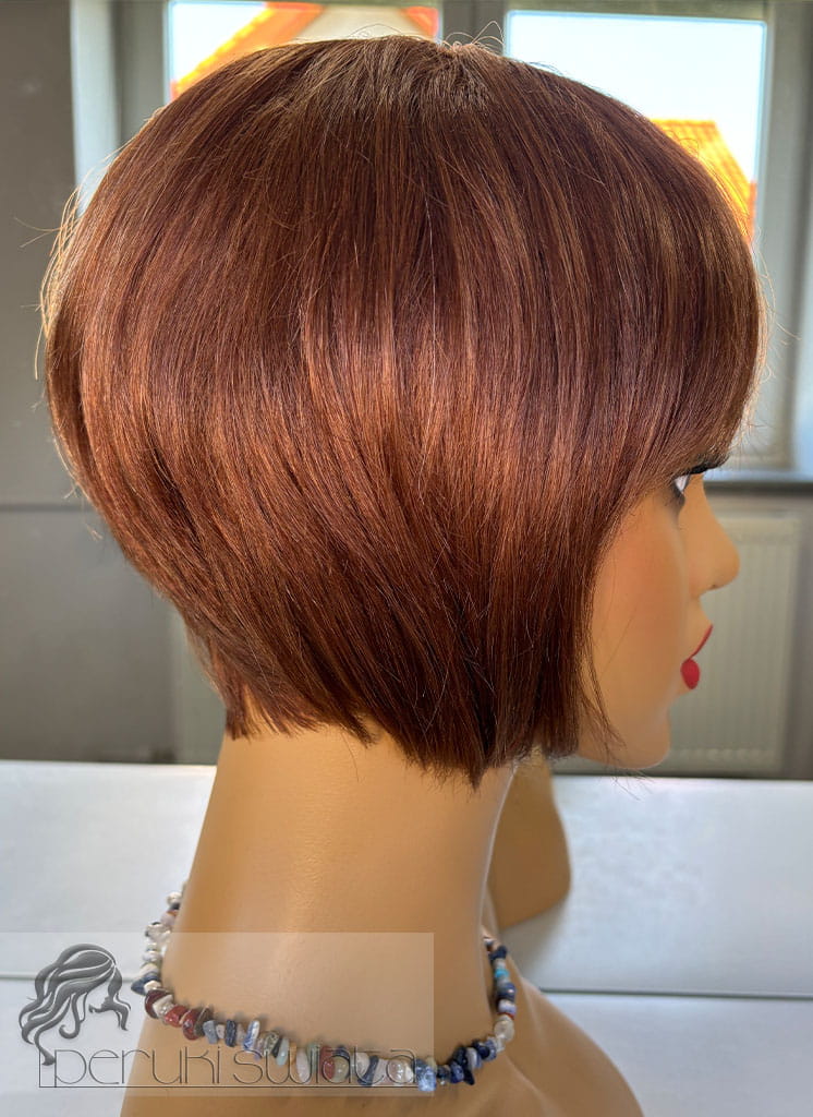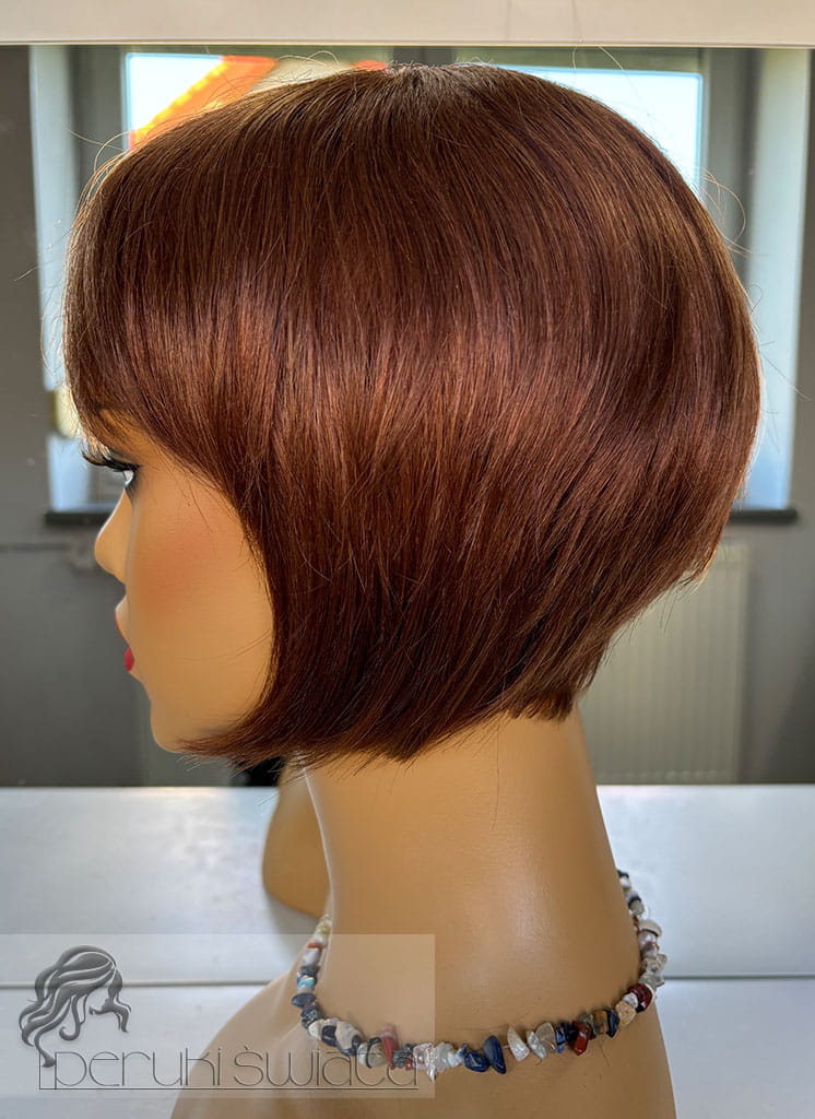 Peruka Iliana, bob z grzywką, włosy naturalne, kolor: rudy