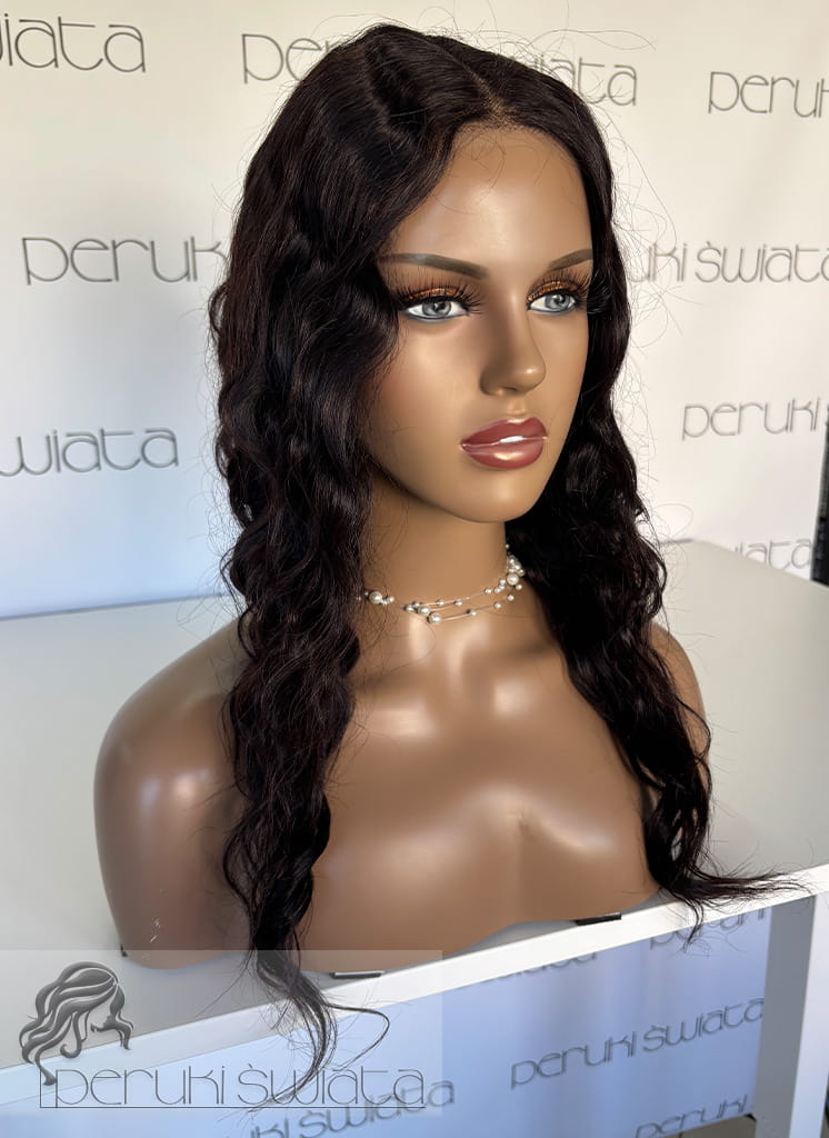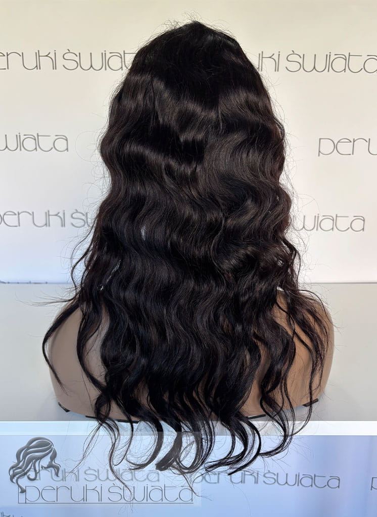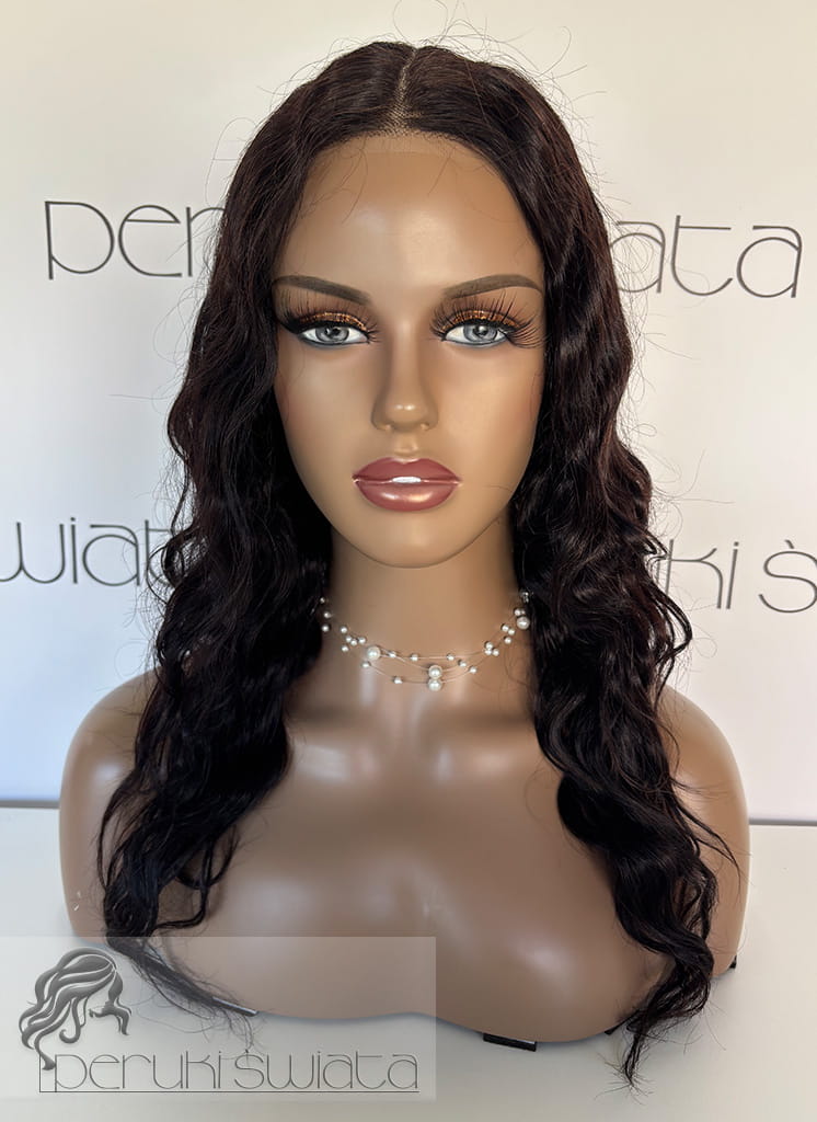 Peruka Jula, włosy naturalne, kolor: ciemny czekoladowy brąz, fale