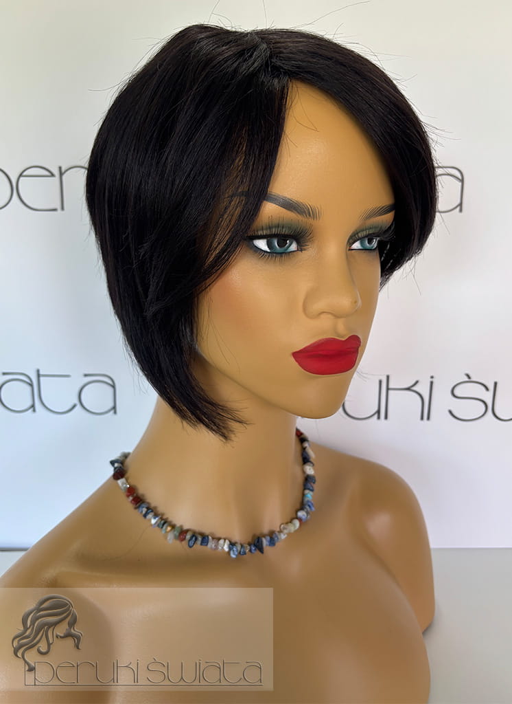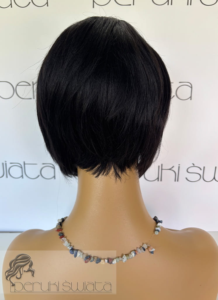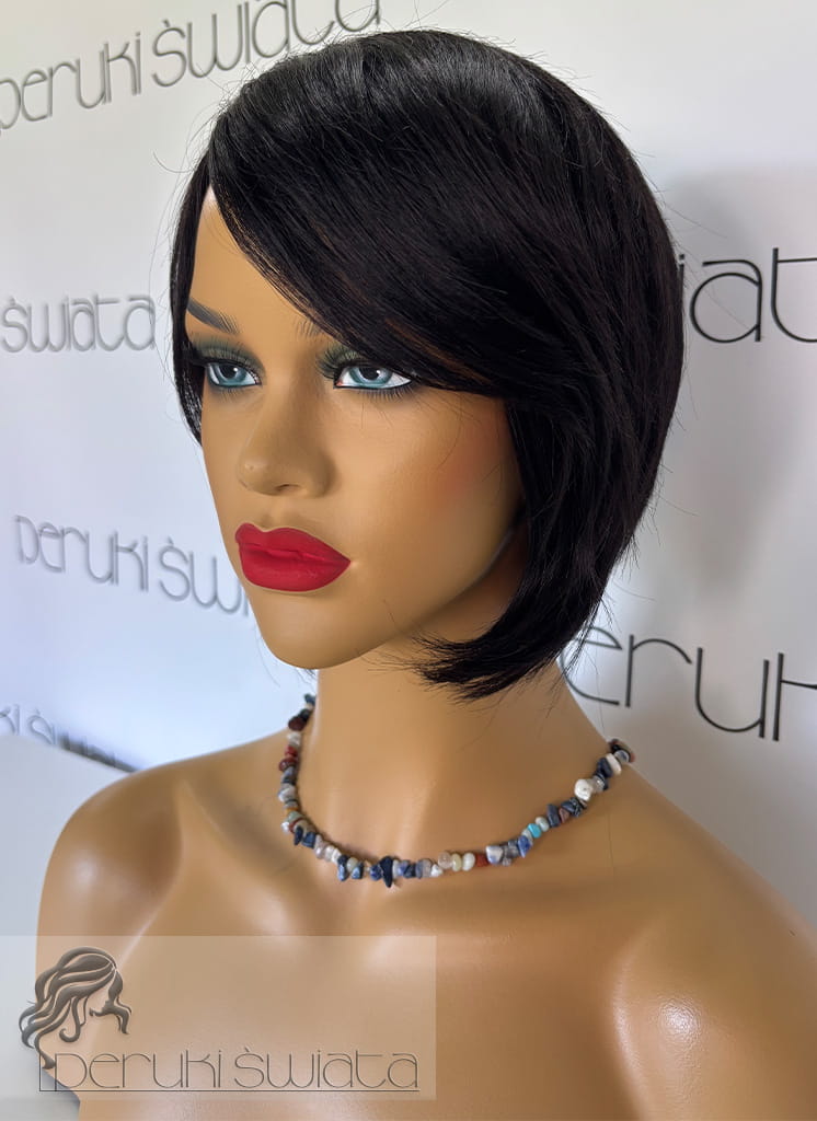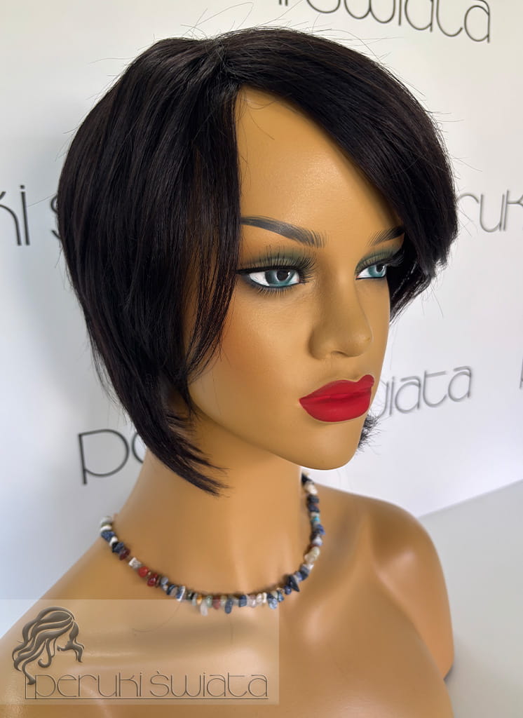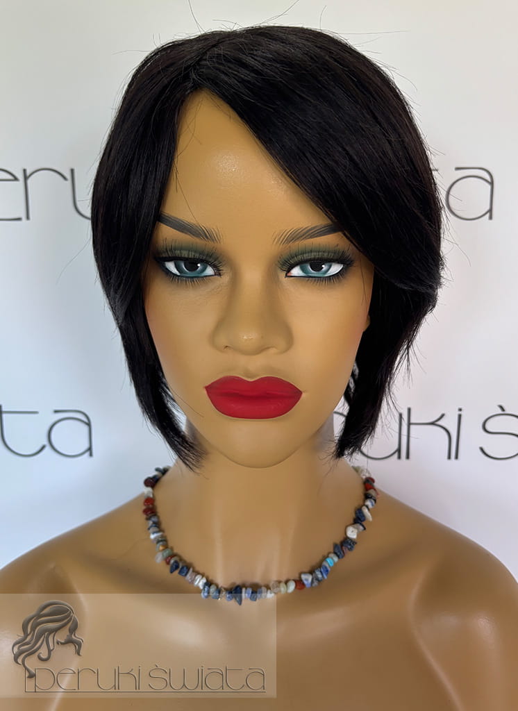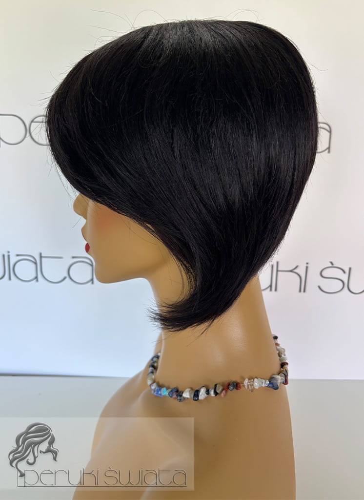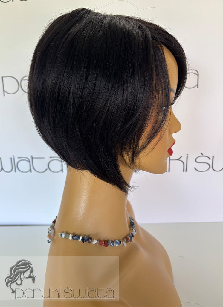 Peruka MC39, włosy naturalne, bob z długą grzywką, kolor: czerń