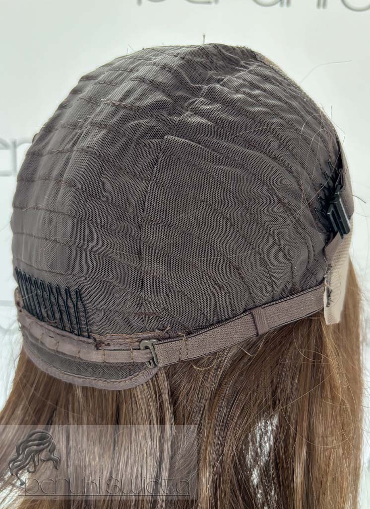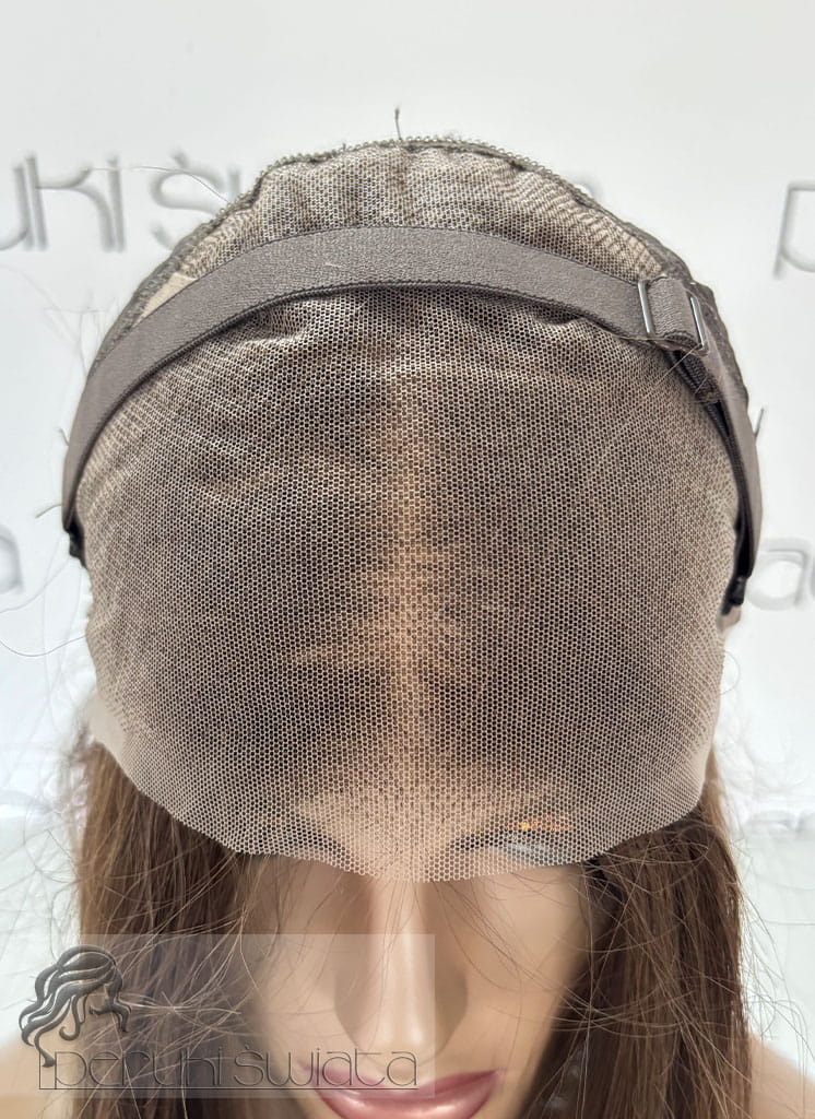 Czepek typu: full lace front (możliwość dowolnego zaczesania przedziałka w obrębie siateczki, podcięcia grzywki, efekt wyrastania włosów z głowy, rozmyta linia przednia peruki)
