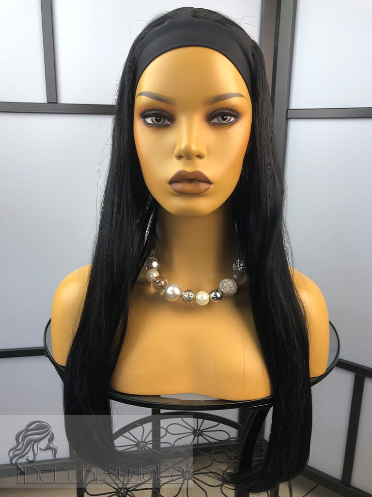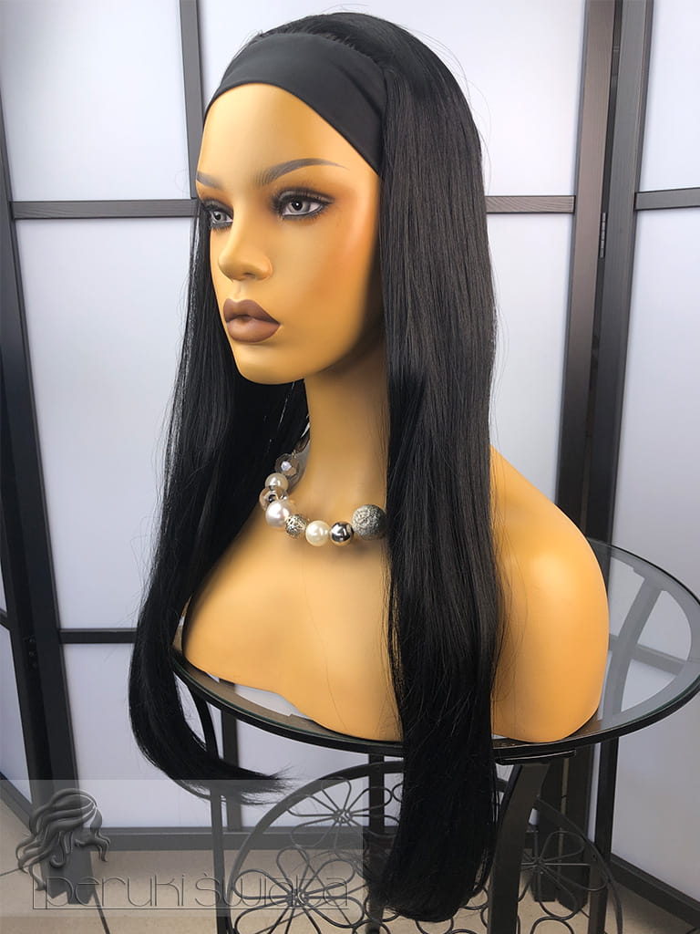 Peruka Malia, kanekalon japoński, long bob na opasce z mikrofibry, kolor: czerń