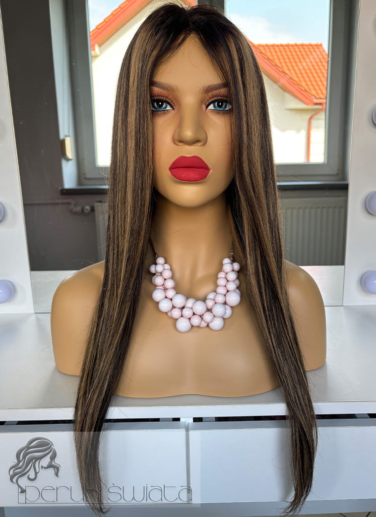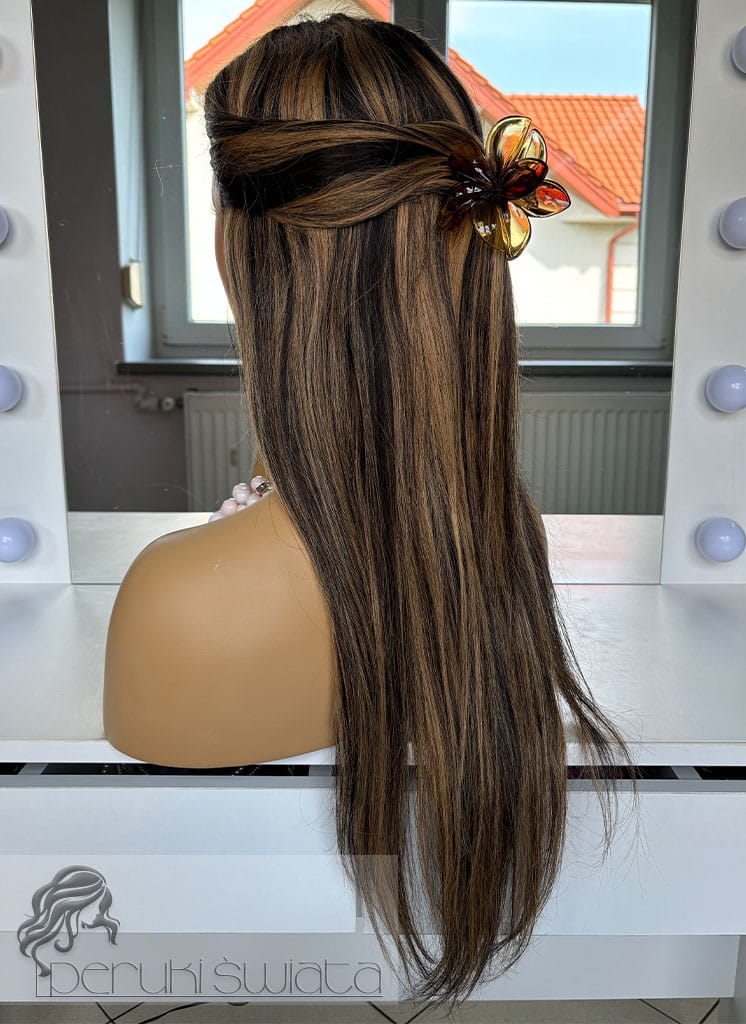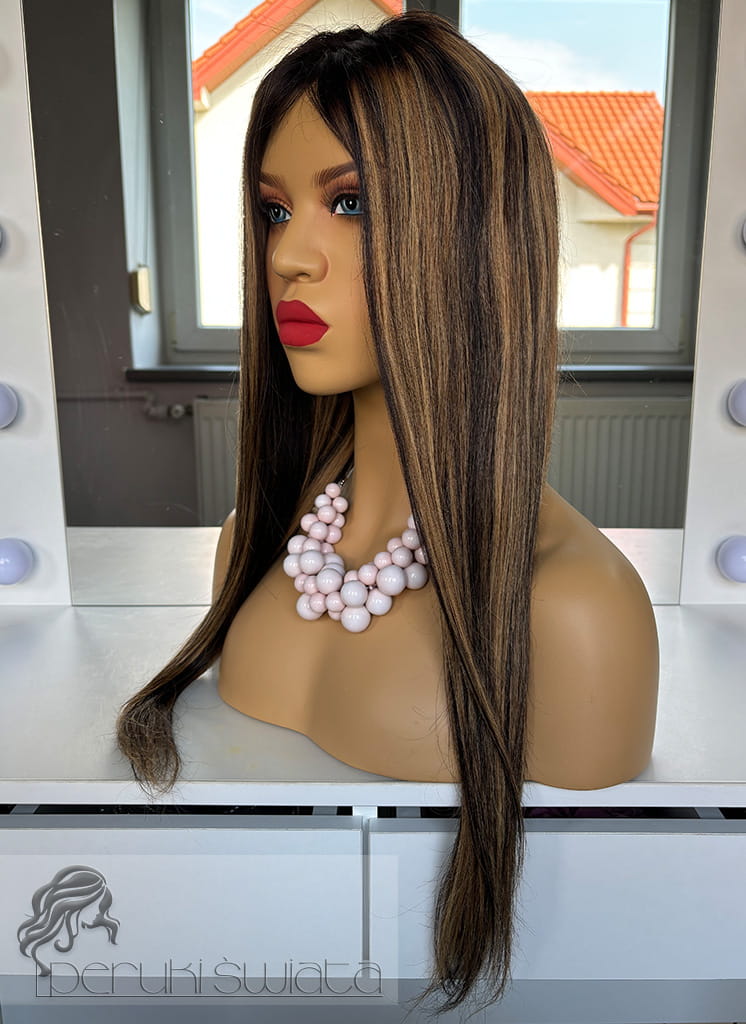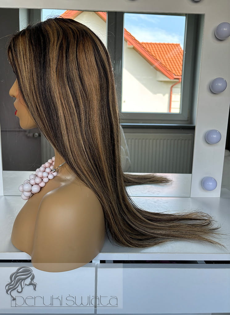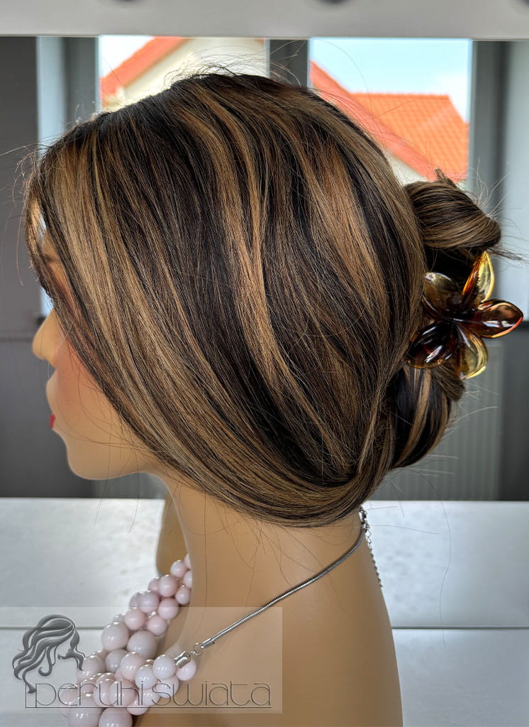 Peruka Matilda, włosy naturalne, kolor: balayage: miodowy blond z brązem
