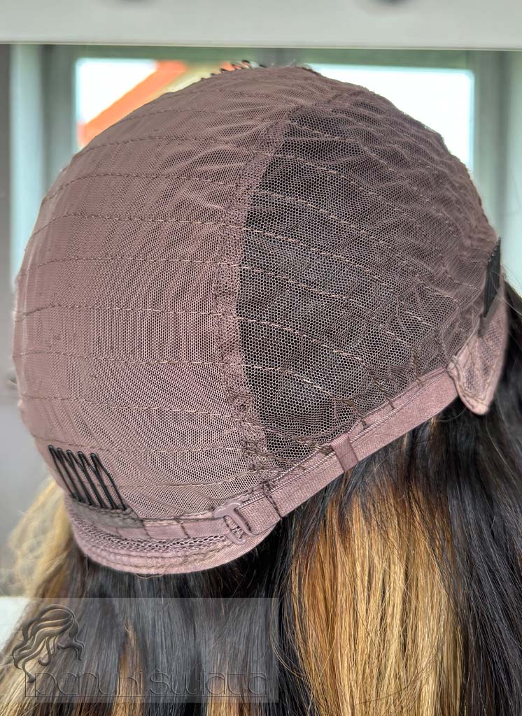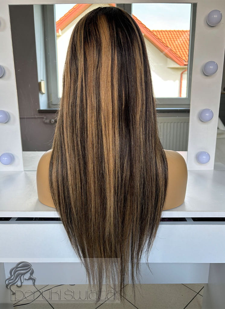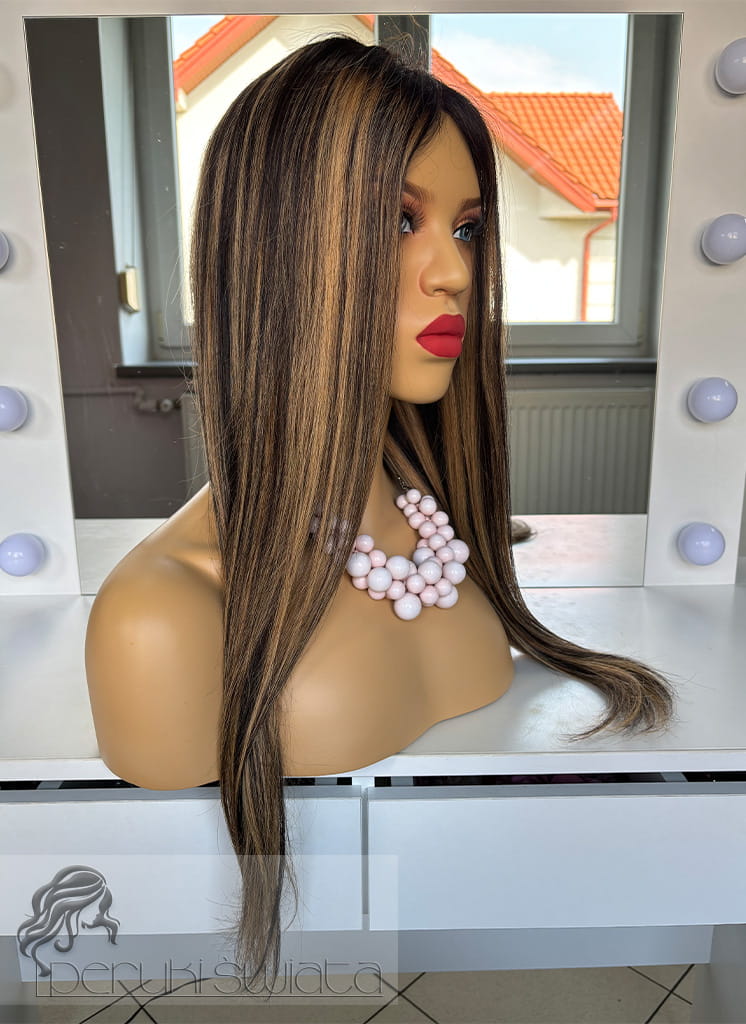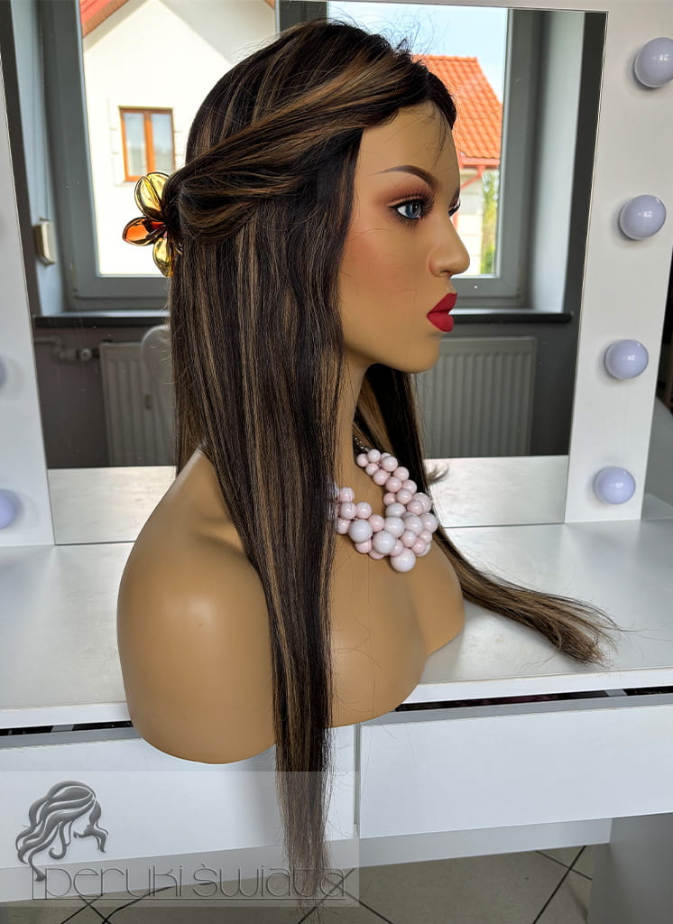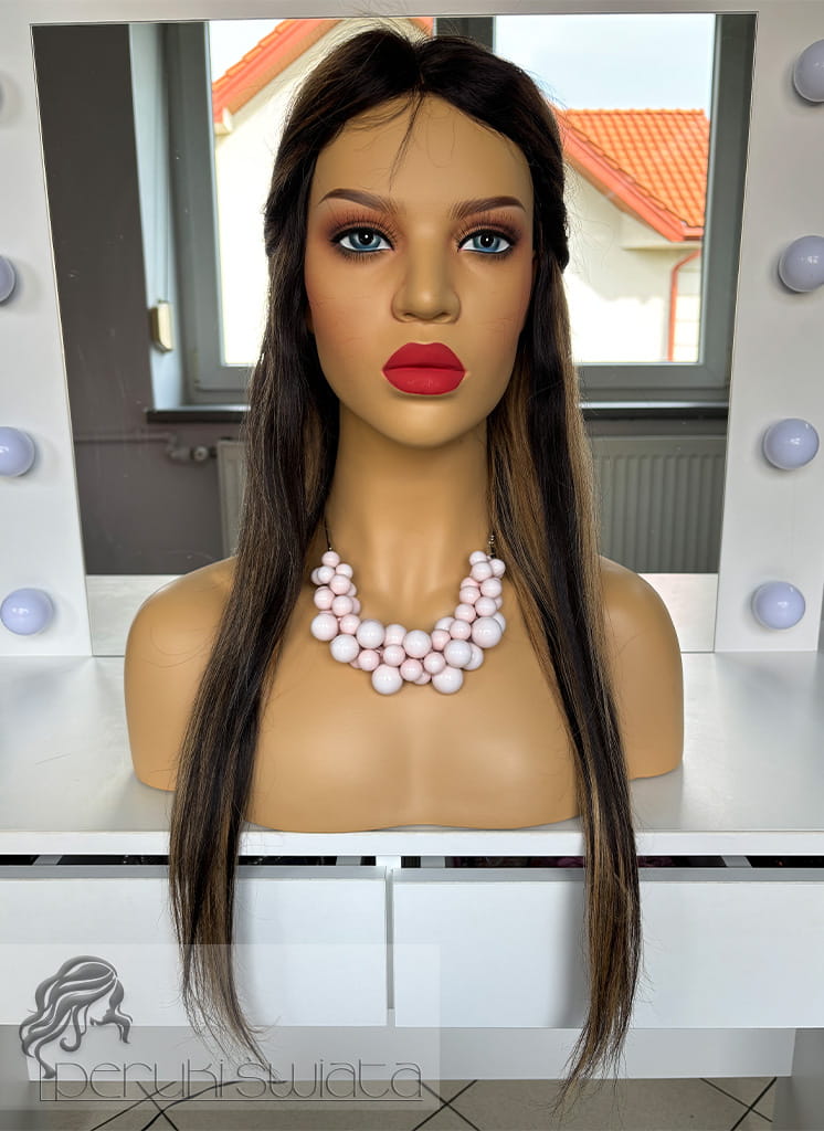 Peruka Matilda, włosy naturalne, kolor: balayage: miodowy blond z brązem