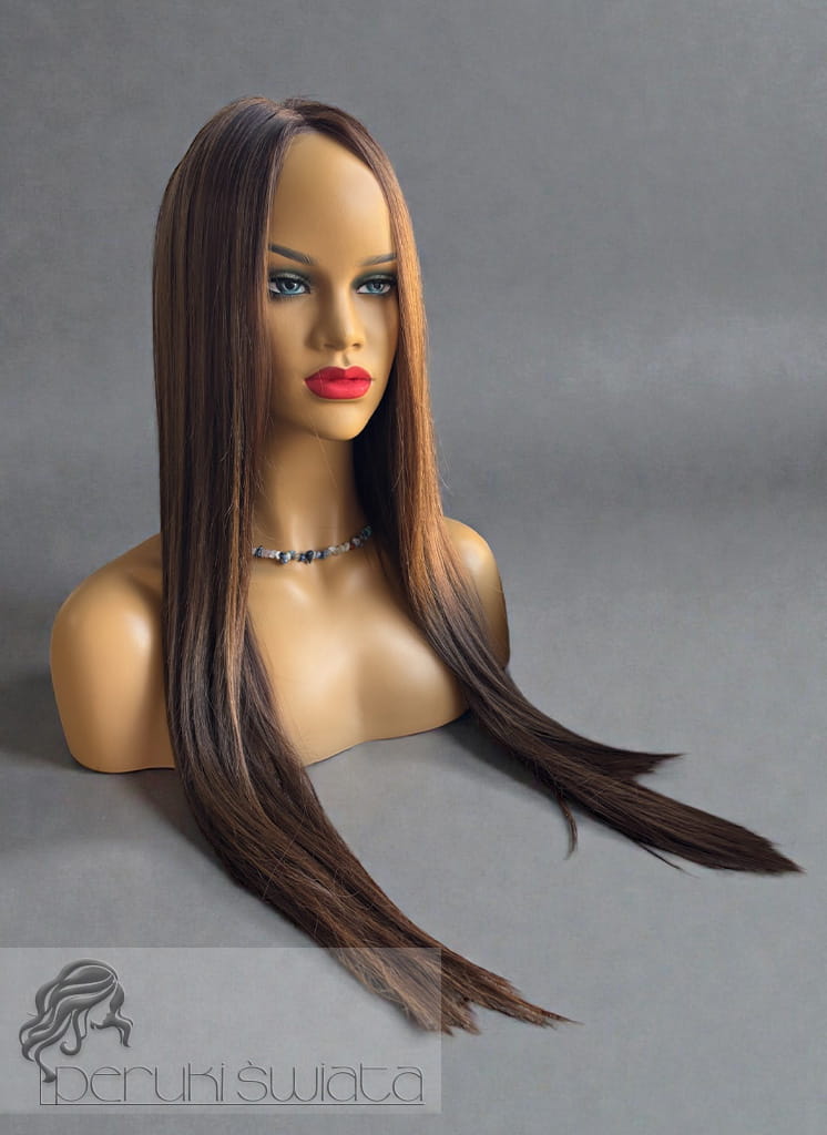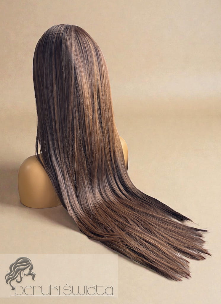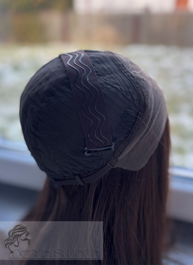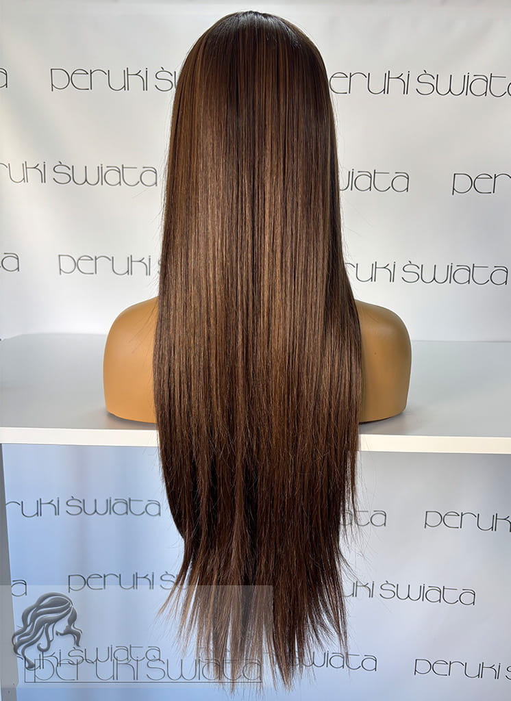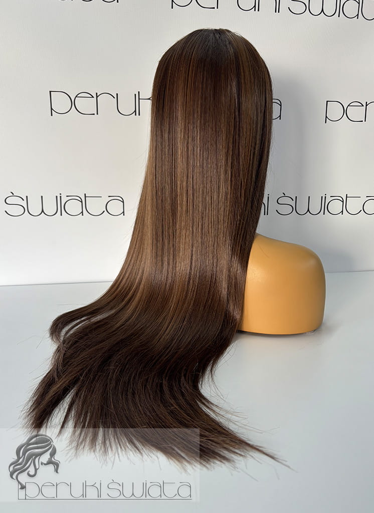 Peruka Maura, czepek typu: full lace, kanekalon termoplastyczny, ciepły brąz z refleksami
