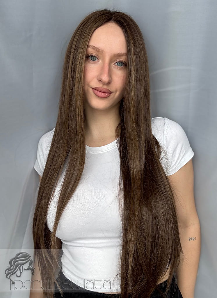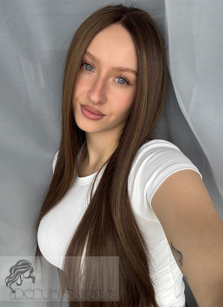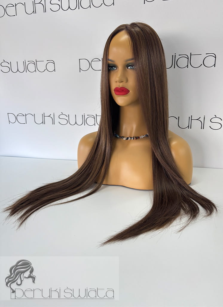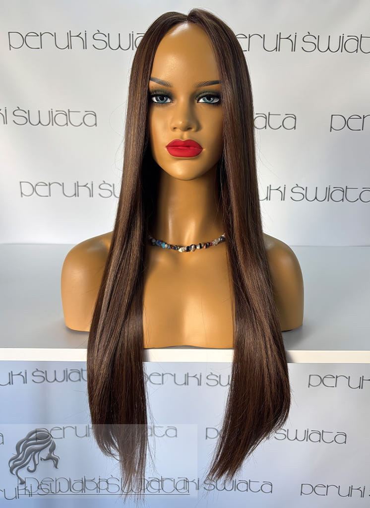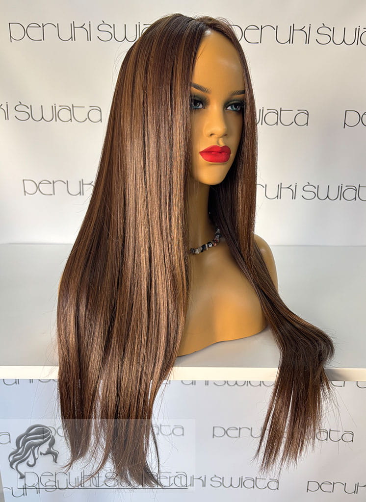 Peruka Maura, czepek typu: full lace, kanekalon termoplastyczny, ciepły brąz z refleksami