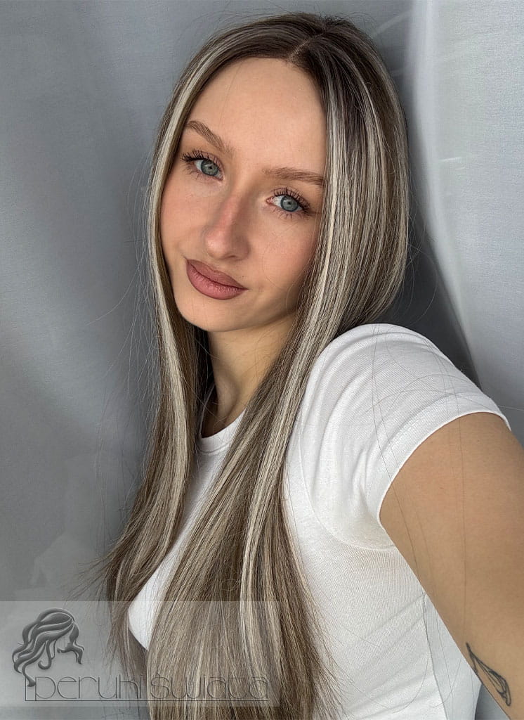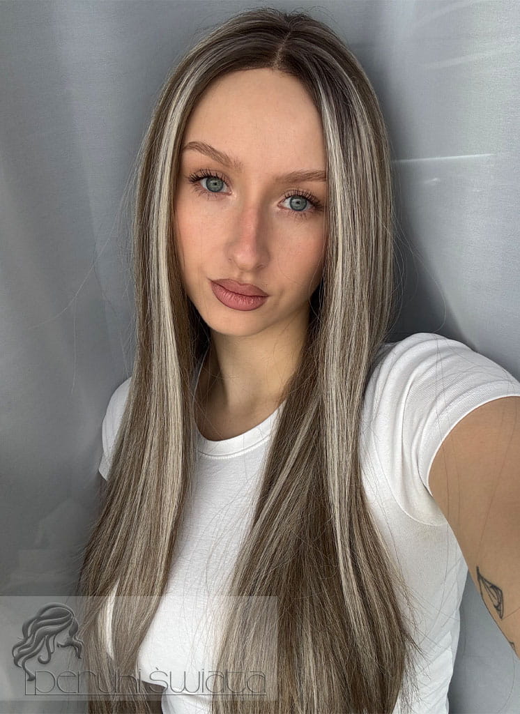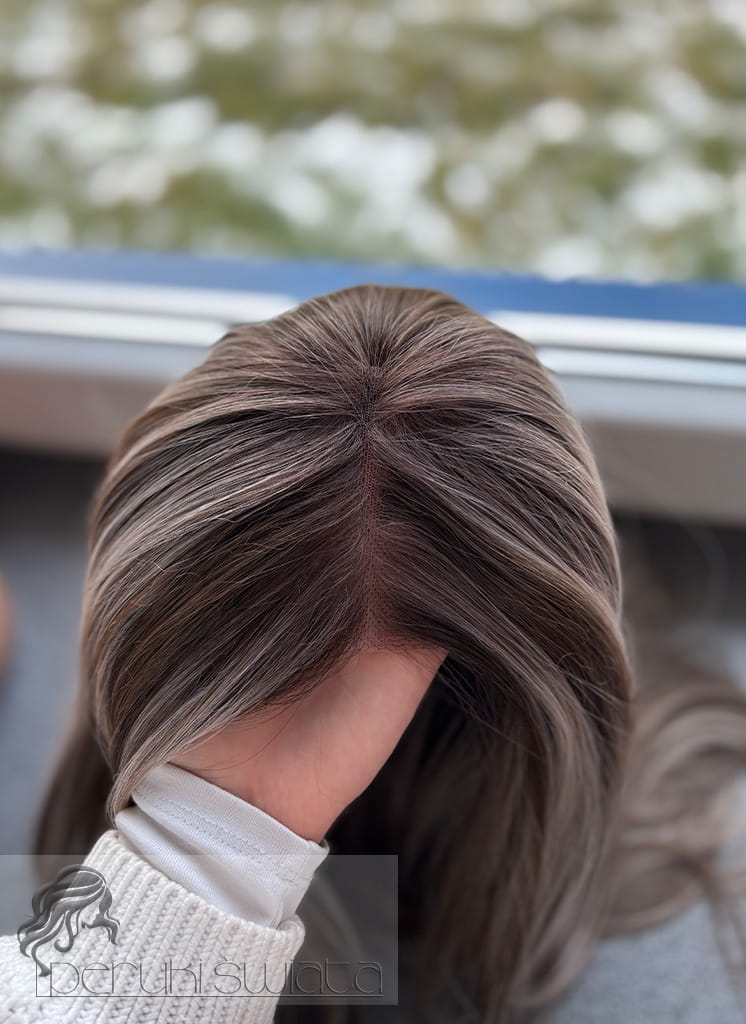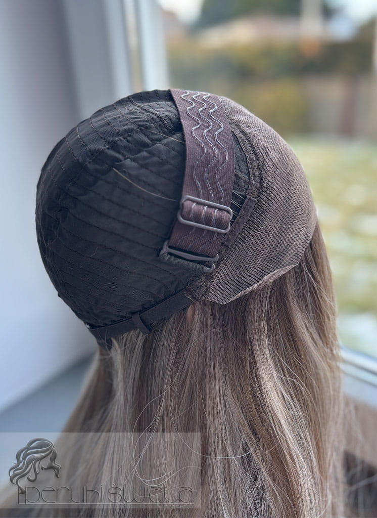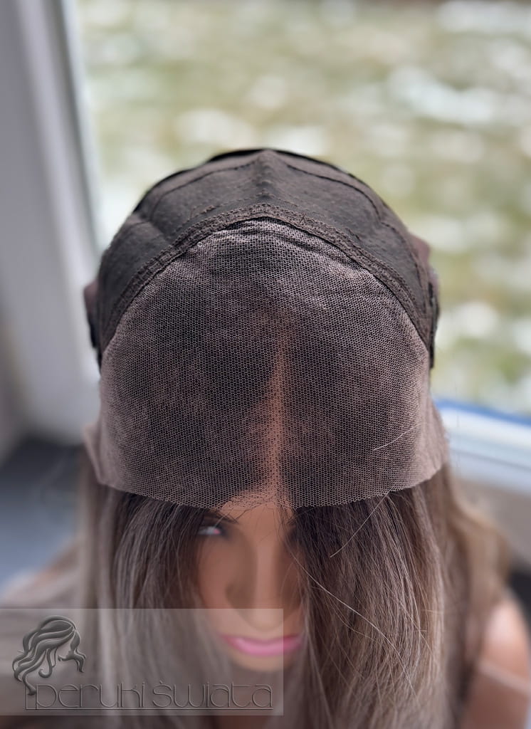 Czepek typu: full lace front (możliwość dowolnego zaczesania przedziałka w obrębie siateczki, podcięcia grzywki, efekt wyrastania włosów z głowy, rozmyta linia przednia peruki)