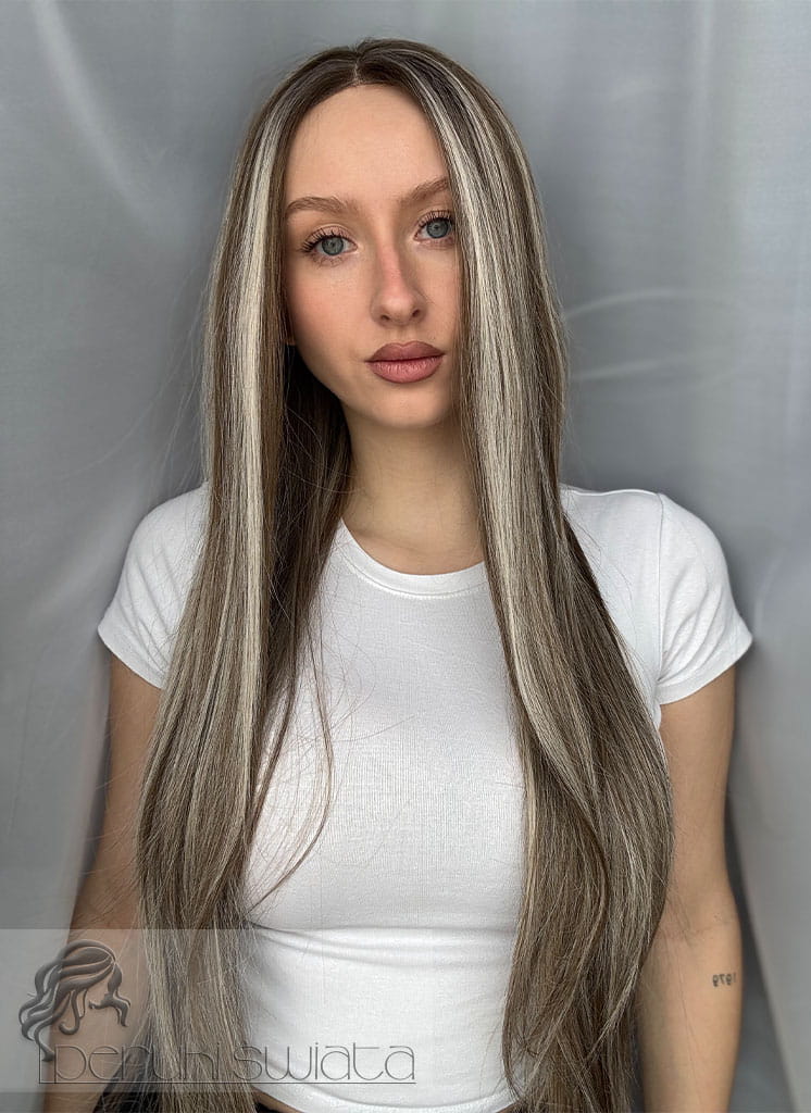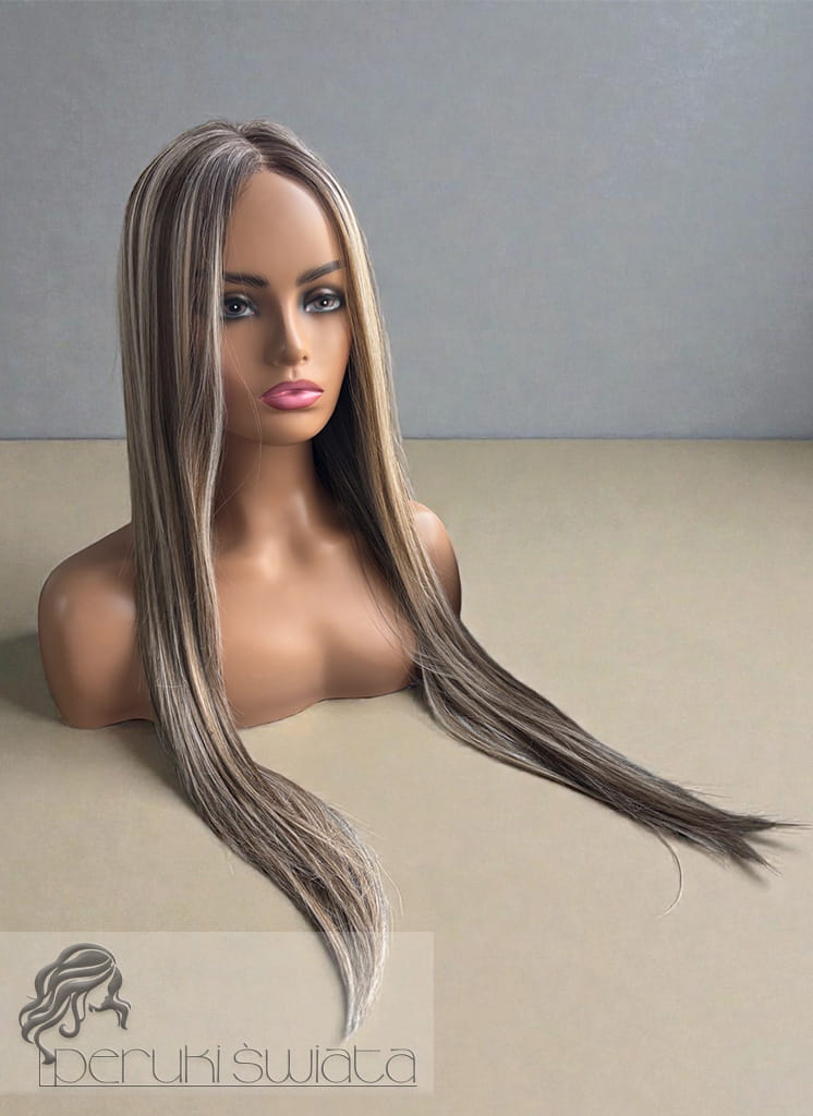 Peruka Maura, czepek typu: full lace, kanekalon termoplastyczny, mix: jasny blond z ciemnym blondem