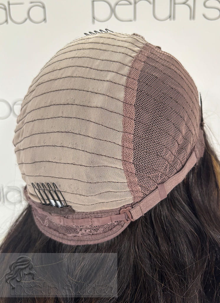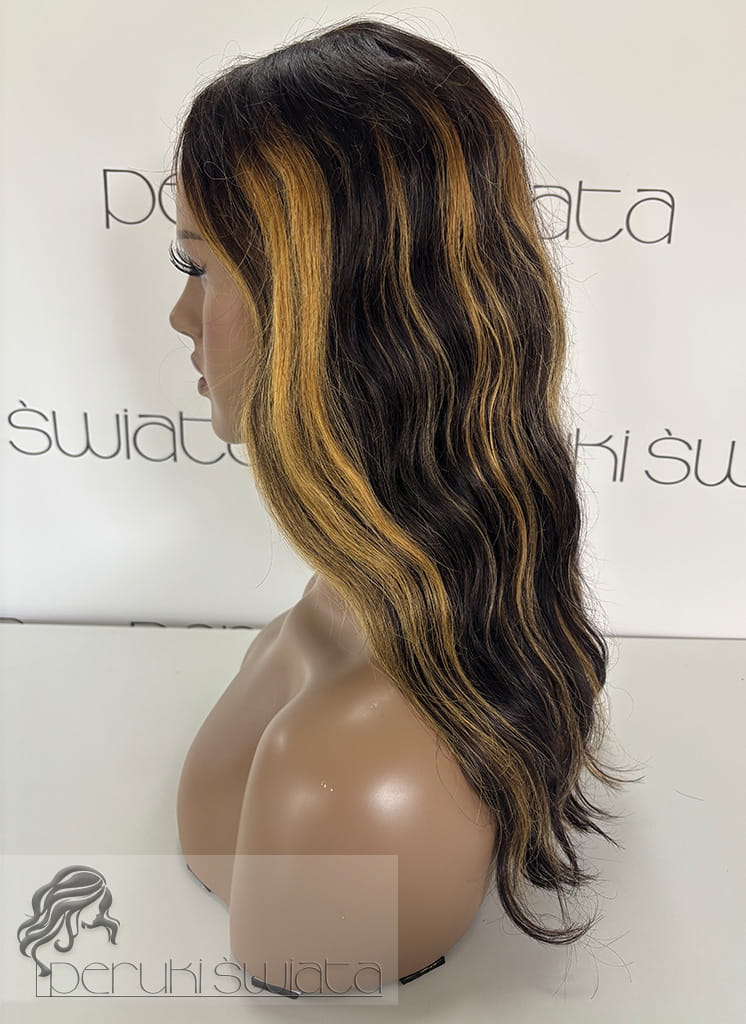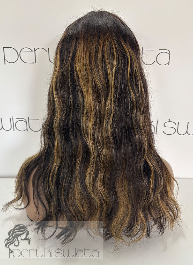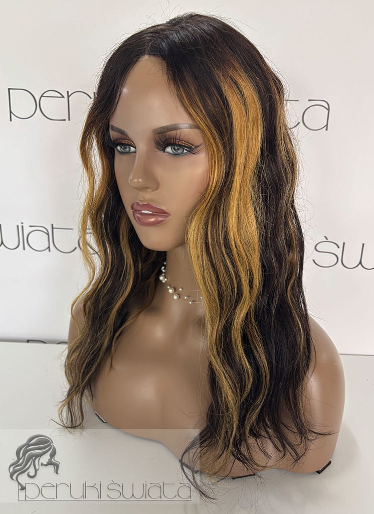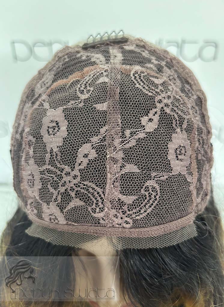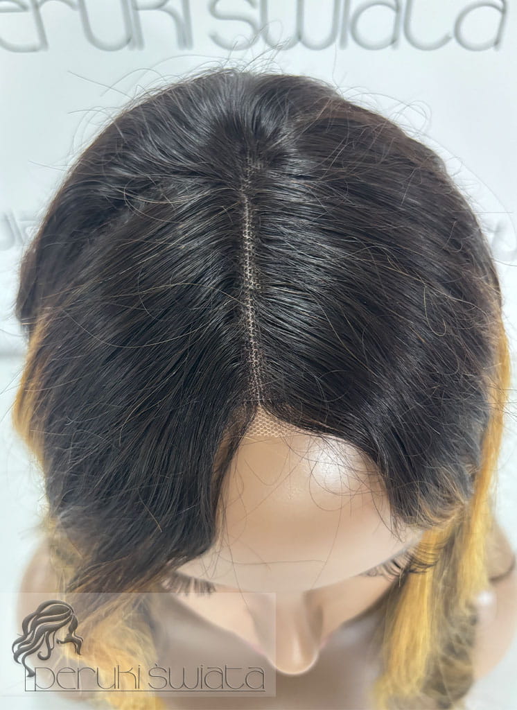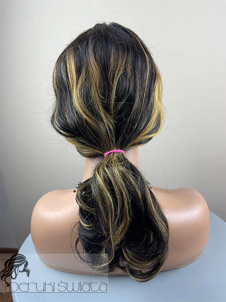 Peruka NE32, włosy naturalne, kolor: czerń z blondem, fale/loki