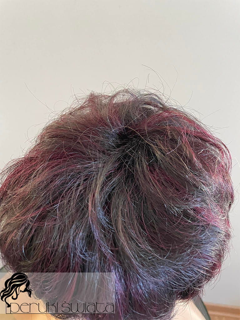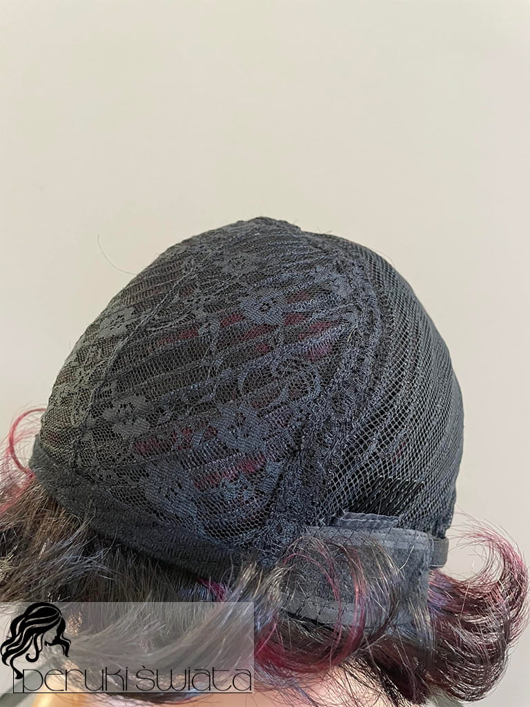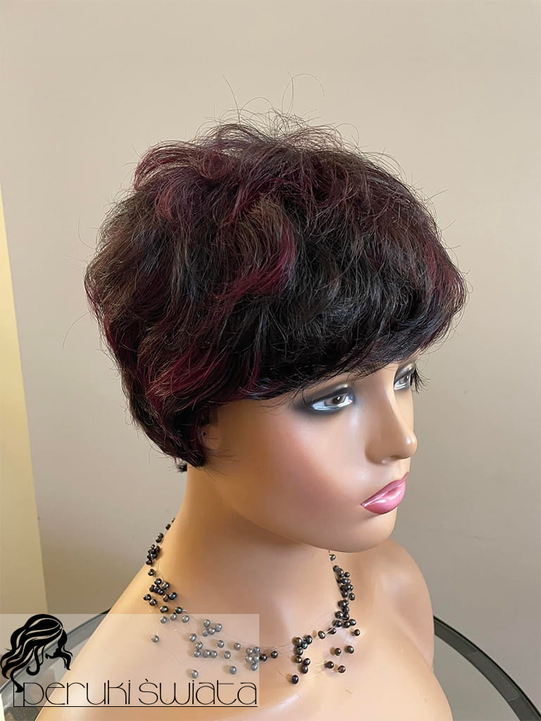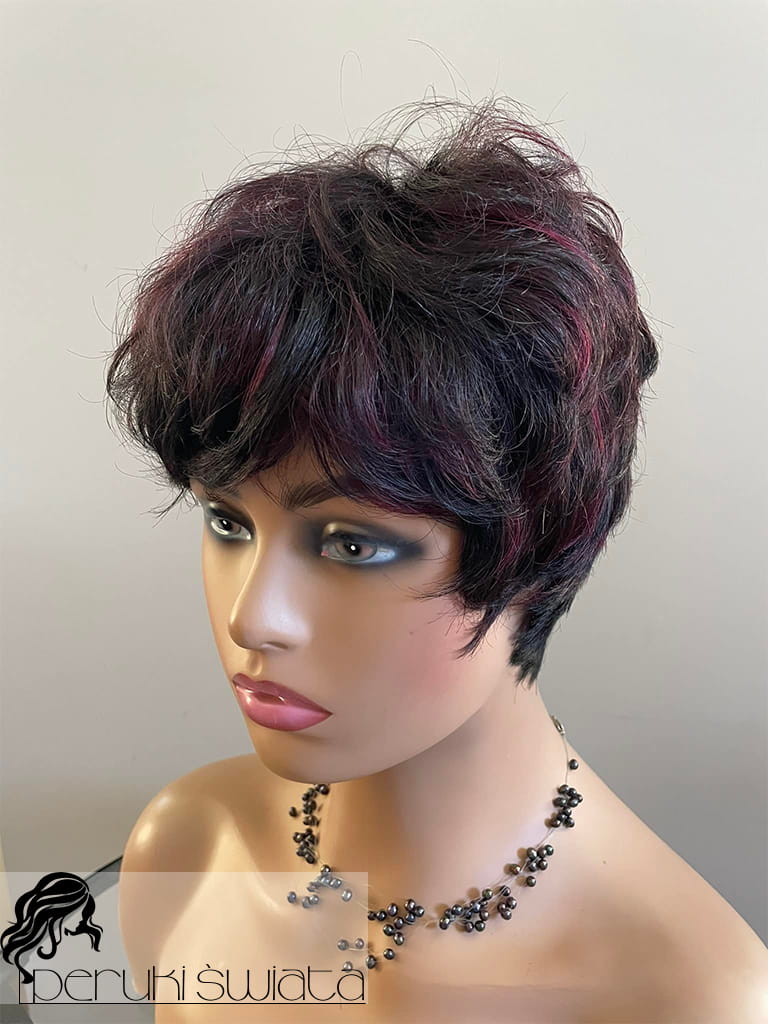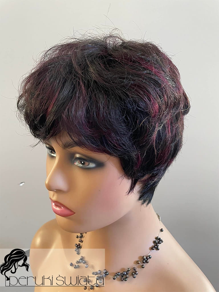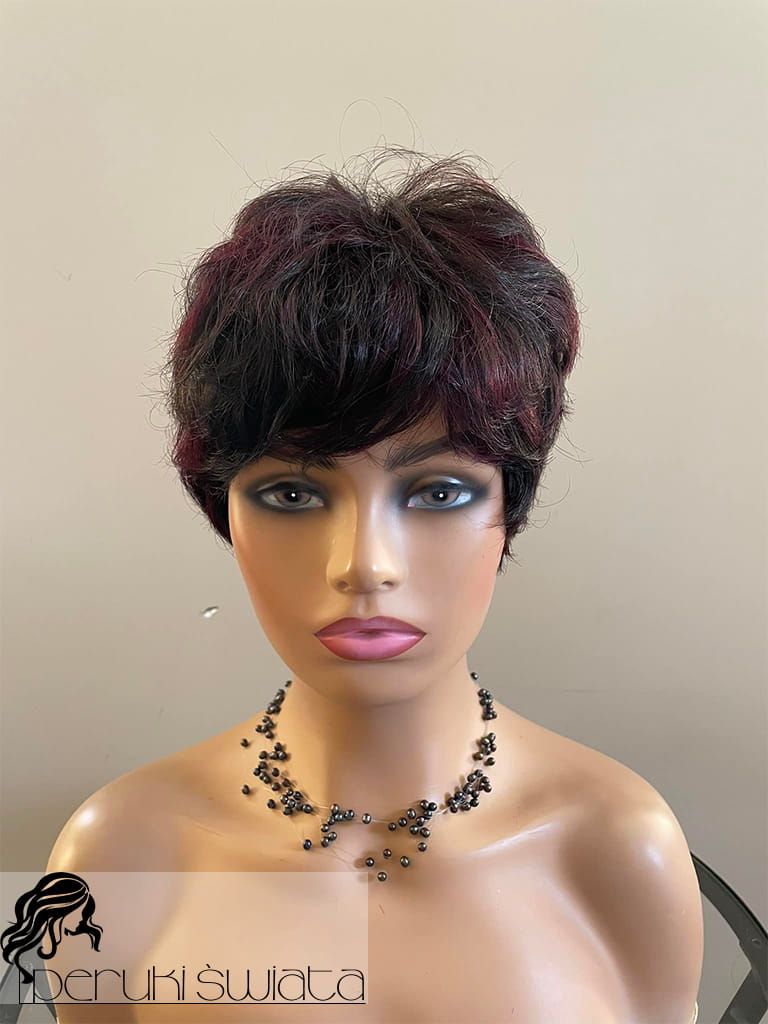 Peruka Olena, włosy naturalne, kolor : czerń z burgundem, bob