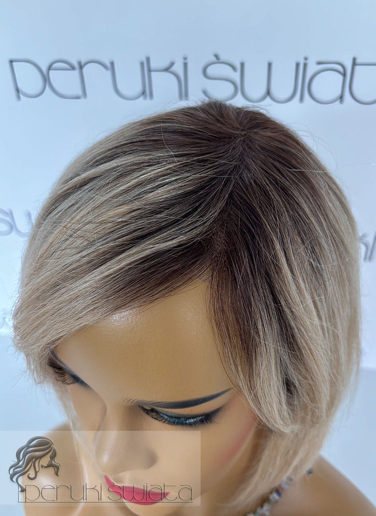 Peruka Paloma, włosy naturalne, bob z grzywką, jasny, ciepły blond na odroście